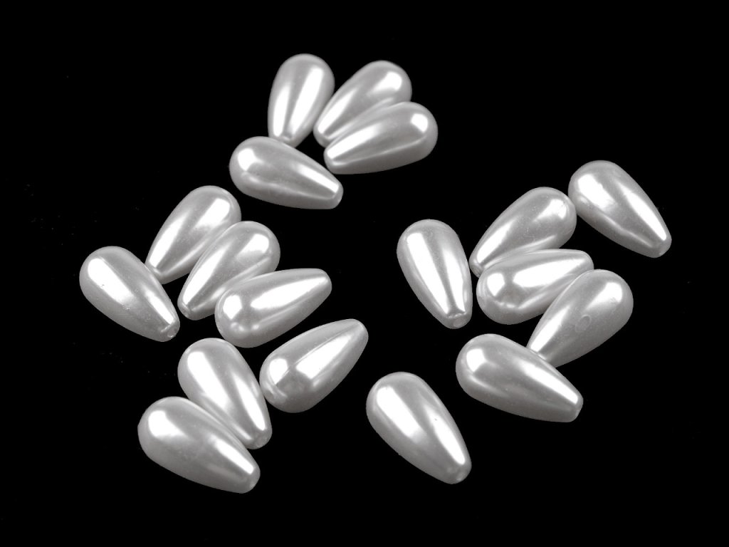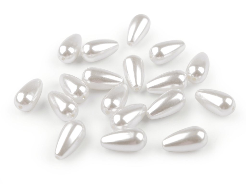 Plastové korálky ve tvaru větší kapky mají perlový lesk, na jaký jste zvyklí u skleněných voskovaných perlí. Našimi zákazníky jsou obzvlášť žádané, protože mají malou hmotnost a šperkům dodají slavnostní vzhled. Hodí se na dlouhé návleky náhrdelníků, na náramky i na jednoduché náušnice. Náš tip: korálky můžete využít na malé korálkové andělíčky. Balení 20 g obsahuje cca 18 ks korálků.- Průměr: 10 mm