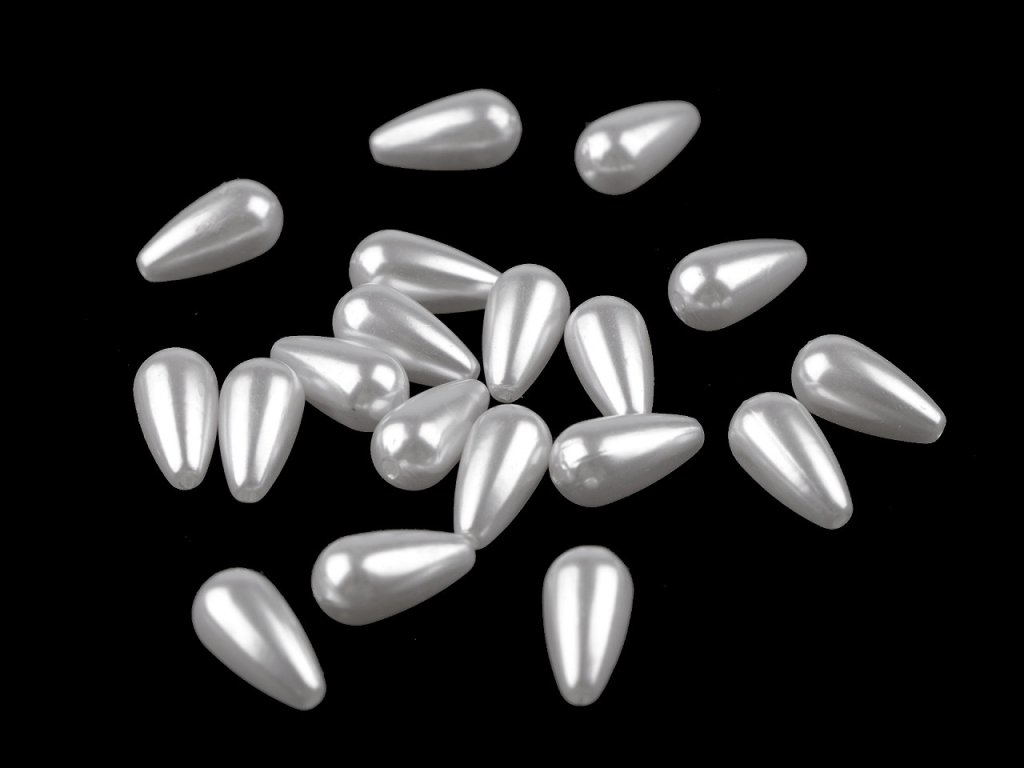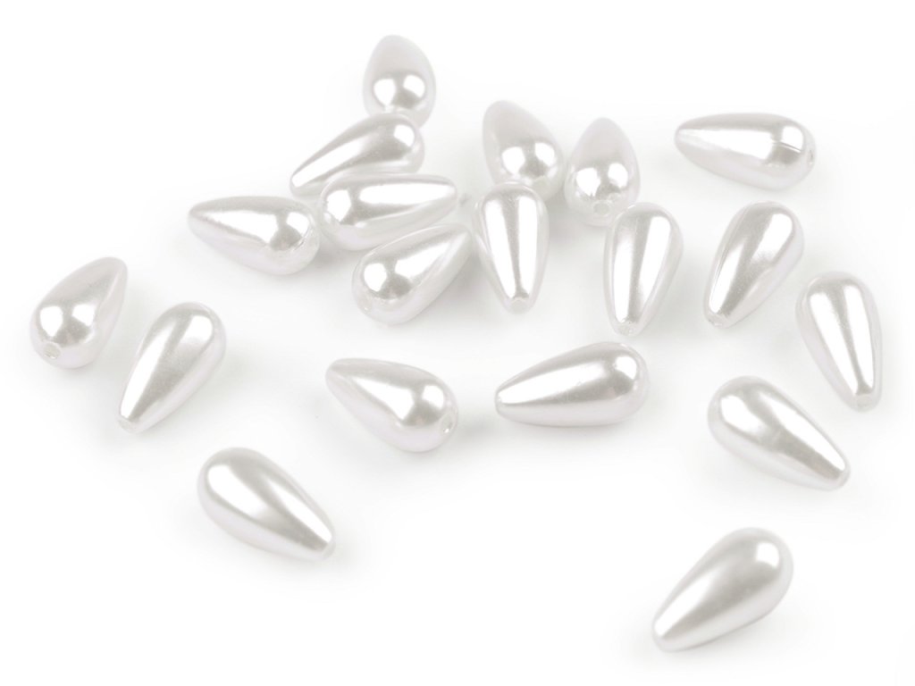 Plastové korálky ve tvaru kapky mají perlový lesk, na jaký jste zvyklí u skleněných voskovaných perlí. Našimi zákazníky jsou obzvlášť žádané, protože mají malou hmotnost a šperkům dodají slavnostní vzhled. Hodí se na dlouhé návleky náhrdelníků, na náramky i na jednoduché náušnice. Náš tip: korálky můžete využít na malé korálkové andělíčky. Balení 10 g obsahuje cca 19 ks korálků.- Průměr: 8 mm