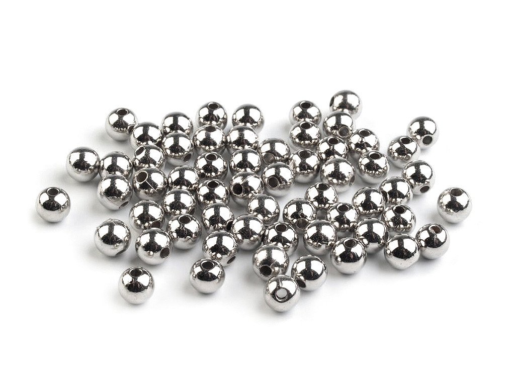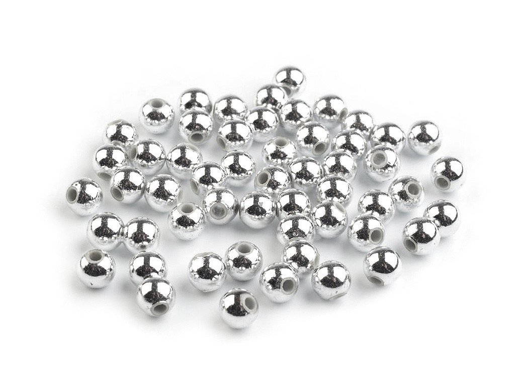 Výrazné plastové korálky ve tvaru kuličky s metalickou, vysoce lesklou úpravou na povrchu. Věrně imitují korálky kovové, oproti kterým jsou lehčí, takže vaše výrobky nezatíží a nebudou studit jako kov. Vašim výrobkům dodají elegantní vzhled. V sáčku po 20 g je cca 200 ks.- Průměr: 6 mm