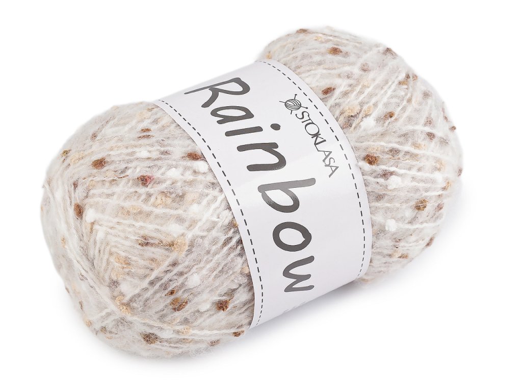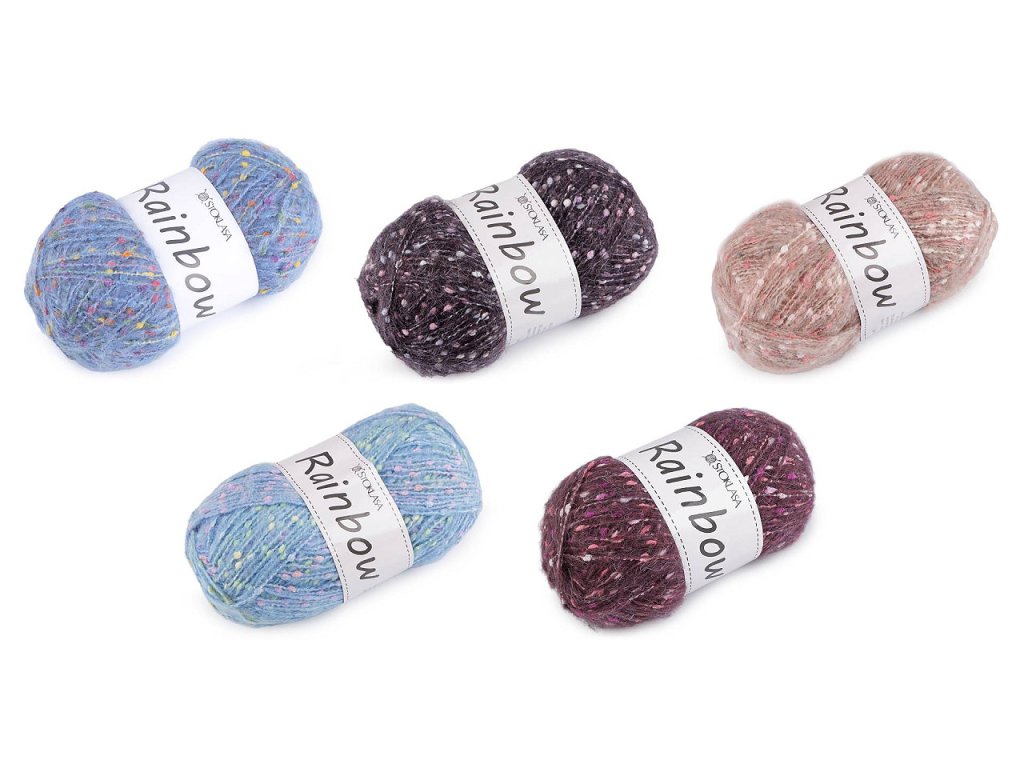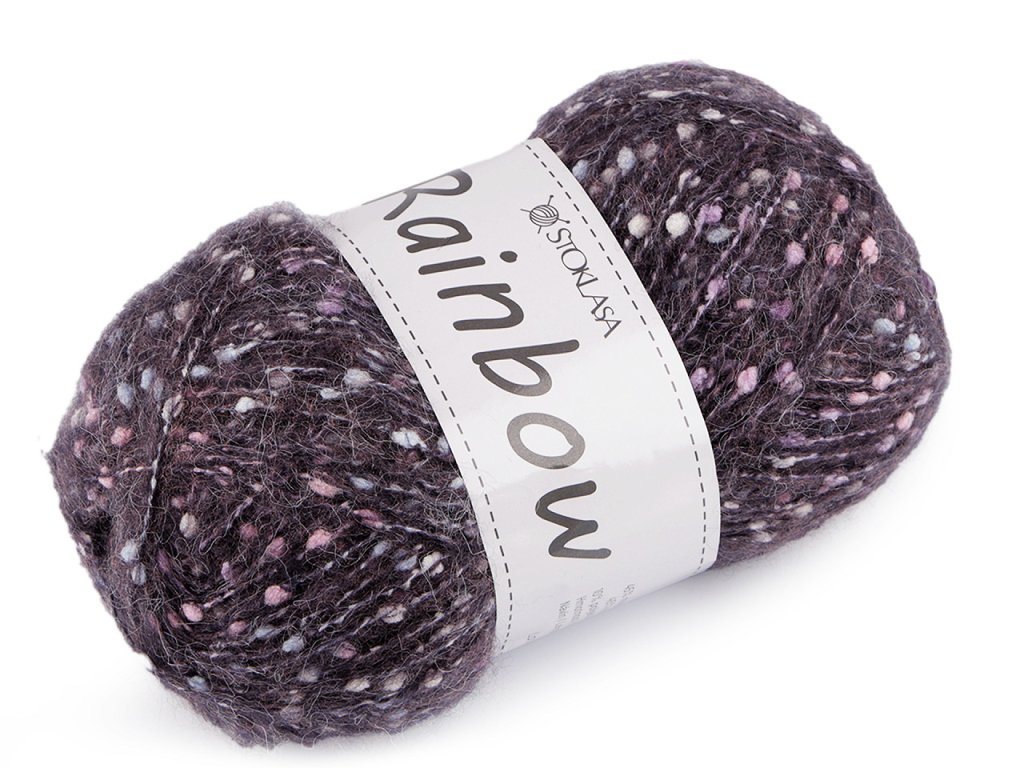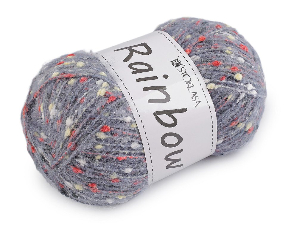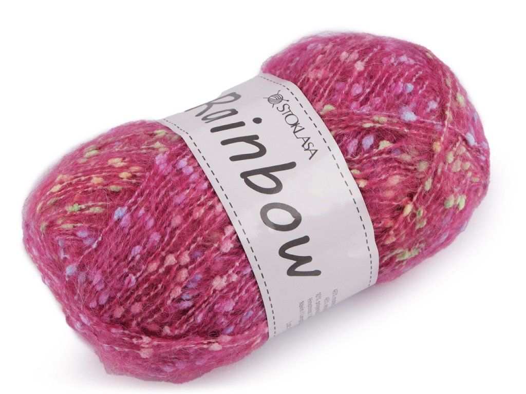 Příze Rainbow s vysokým podílem mohéru a vlny vás v chladném období zahřeje. Efektně na ní vypadají drobné barevné bambulky z žinylky. Přízi využijete na pletení či háčkování svetrů, šálů, ponožek nebo čepic. Velikost jehlic: 5 - 6 Velikost háčku: 5 - 6 Pokud přízi budete párat, je nutné postupovat velice opatrně, aby se nepoškodila. Před pletením / háčkováním doporučujeme udělat zkušební vzorek. Vzorek na fotografii (66 x 36 cm) byl upleten z 1 klubíčka, jehlicemi č. 3,5.- Design Stoklasa