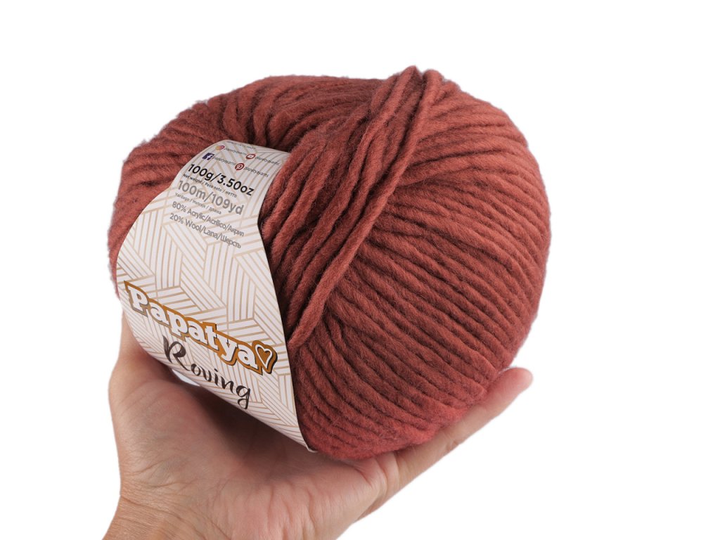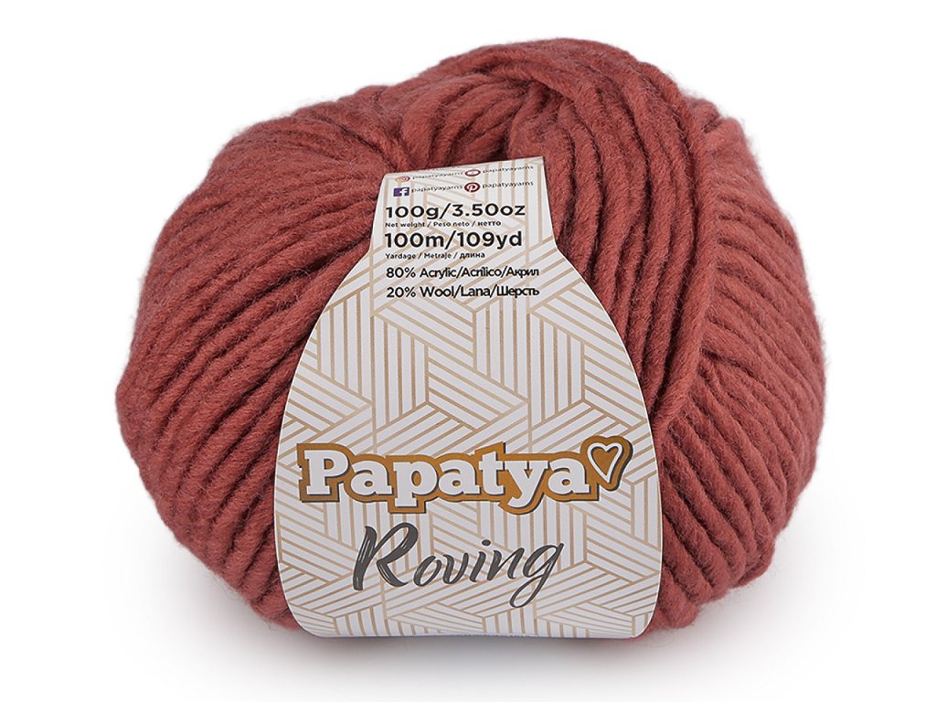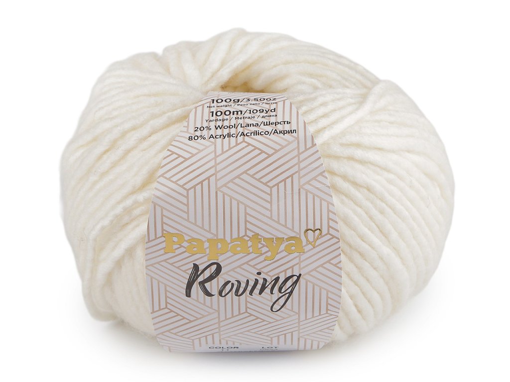Pletací příze Papatya Roving je jemná akrylová příze s příměsí hřejivé vlny. Využijete ji na pletení či háčkování objemnějších svetrů, vest, kabátků, čepic, šálů apod. Velikost jehlic: 8 - 9 Velikost háčku: 9 - 10- Hmotnost: 100 g