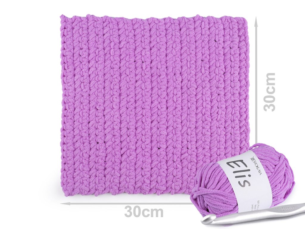 Žinylková příze Elis je měkká, hebká a velmi příjemná na dotek. Hodí se na pletení svetrů, šálů, čepic, ponožek apod. Velikost jehlic: 4,5 Velikost háčku: 6,5 Pokud přízi budete párat, je nutné postupovat velice opatrně, aby se nepoškodila. Před pletením / háčkováním doporučujeme udělat zkušební vzorek. Vzorek na fotografii (30 x 30 cm) byl uháčkován z 1 klubíčka háčkem č. 7.- Design Stoklasa