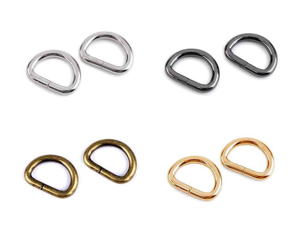 Kovový polokroužek se používá k uchycení ucha kabelky nebo tašky. Je vhodný také na výrobu obojků pro domácí mazlíčky. V místě spoje není svařený.- Šíře průvleku: 20 mm