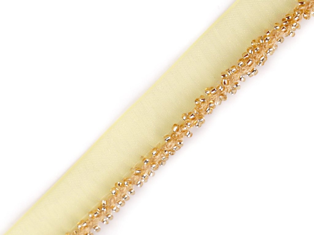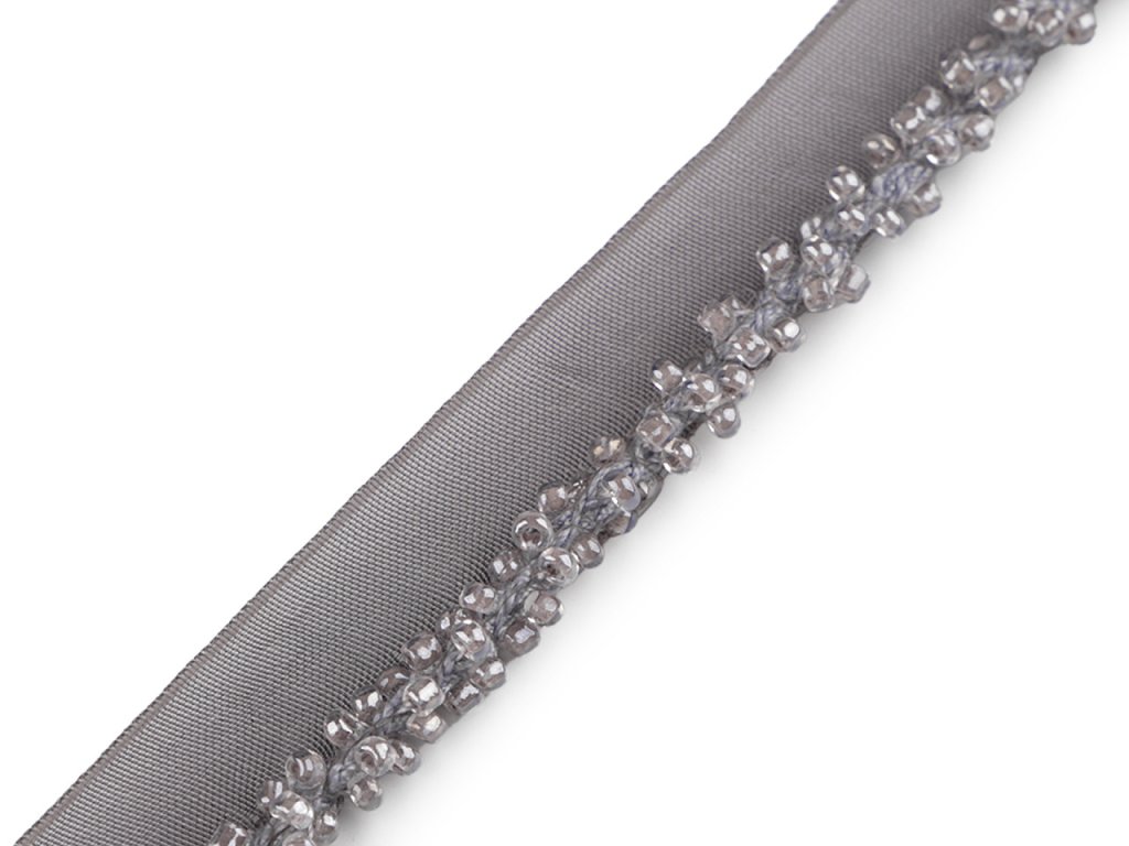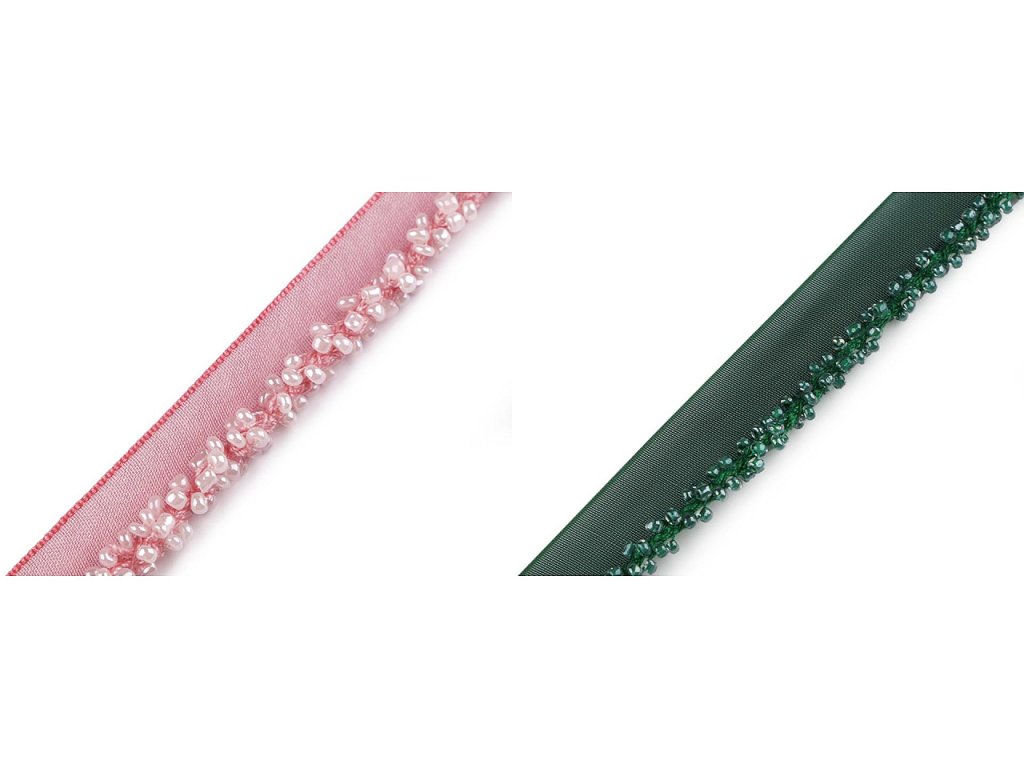 Paspulka se skleněným rokajlem dodá vašemu oděvu nádech elegance. Využijete ji k ozdobení lemů či švů. Korálky jsou přišité na monofilovém základě. Paspulka vynikne na společenských a plesových šatech, halenkách, sukních, kostýmech i módních doplňcích, jako jsou slavnostní psaníčka, obuv apod.- Šíře: 15 mm
