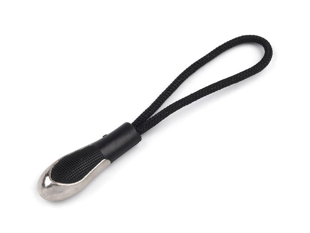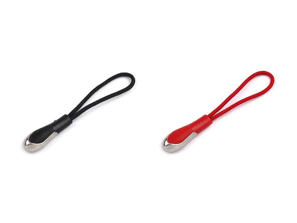 Poutko moderního designu slouží k lepšímu uchycení jezdce na zipu. Tvoří ho táhlo v podobě kapky s kovovým lemem na spodním okraji a polyesterová šňůrka. Díky zajímavému dekoru navíc plní funkci i ozdobného přívěsku. Můžete ho proto pověsit také na klíče, mobil, kabelku, atd. Rozměry plastové části jsou 9 x 25 mm.- Celková délka: 65 mm