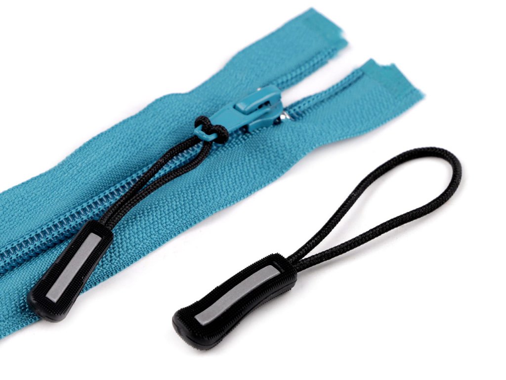 Poutko slouží k pohodlnější manipulaci s jezdcem na zipu. Reflexní prvek na poutku má schopnost odrážet světlo za snížené viditelnosti. Můžete ho pověsit také na klíče, mobil, tašku apod. Rozměry plastové části jsou 9 x 25 mm.- Celková délka: 70 mm