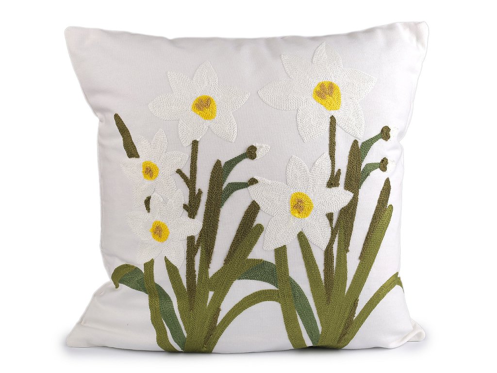 Povlak na polštář zdobí designová výšivka květin, bude se v interiéru vyjímat celoročně. Díky svému poutavému vzhledu se hodí jako perfektní doplněk na pohovku, křeslo nebo postel. Skvěle zútulní i terasu. Může také posloužit jako dárek pro vaše blízké, kteří ocení jeho estetiku a kvalitu. Motiv je jednostranný. Povlak se zapíná na skrytý zip. Povlaky č. 2, 4 a 5 jsou olemované paličkovanou krajkou. Toto je povlak na polštář, výplň můžete koupit zvlášť.- Rozměry: 45 x 45 cm