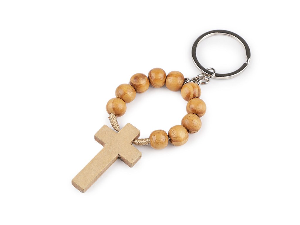 Dřevěný přívěsek desátek můžete díky kovovému kroužku připevnit na klíče nebo kabelku. Jsou z přírodního lakovaného dřeva na drhané šňůrce. 10 korálků je zakončených křížkem. Desátek slouží pro počítání zdrávasů při modlitbě růžence, je zmenšenou a zredukovanou verzí růžence. Je ideální pro osobní modlitby a meditace, poskytuje klid a soustředění na duchovní cestě. Můžete jej používat během tradičních modlitebních rituálů nebo jako symbol víry, který můžete mít stále u sebe.- Rozměry přívěsku: cca 4,5 x 8 cm