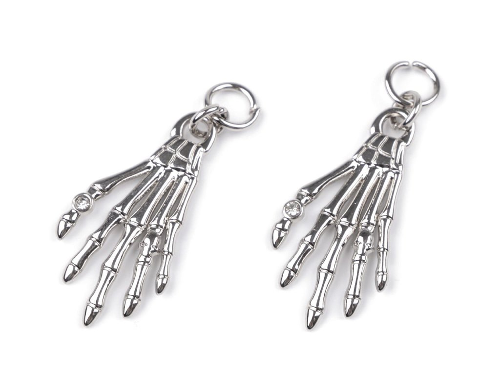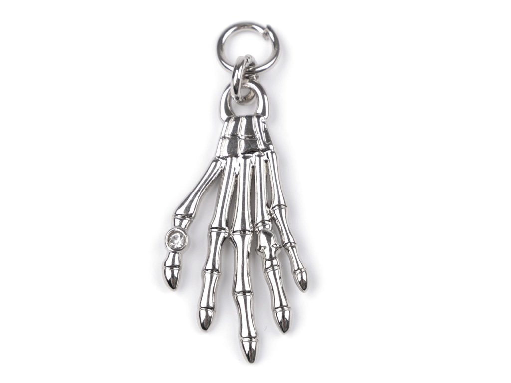 Přívěsek s rukou kostlivce využijete různými způsoby. Palec má ozdobený broušeným kamínkem. Je oboustranný, nahoře má očko k zavěšení. Kamínek je jen na horní straně ruky.- Šířka: 18 mm