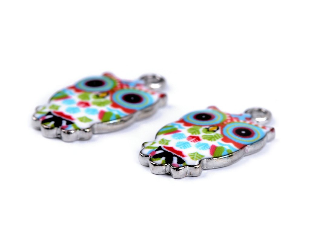 Přívěsek kovové sovy s barevným smaltem je velice precizně zpracovaný. Má mnohostranné využití, je jednostranný, z nemagnetického kovu.