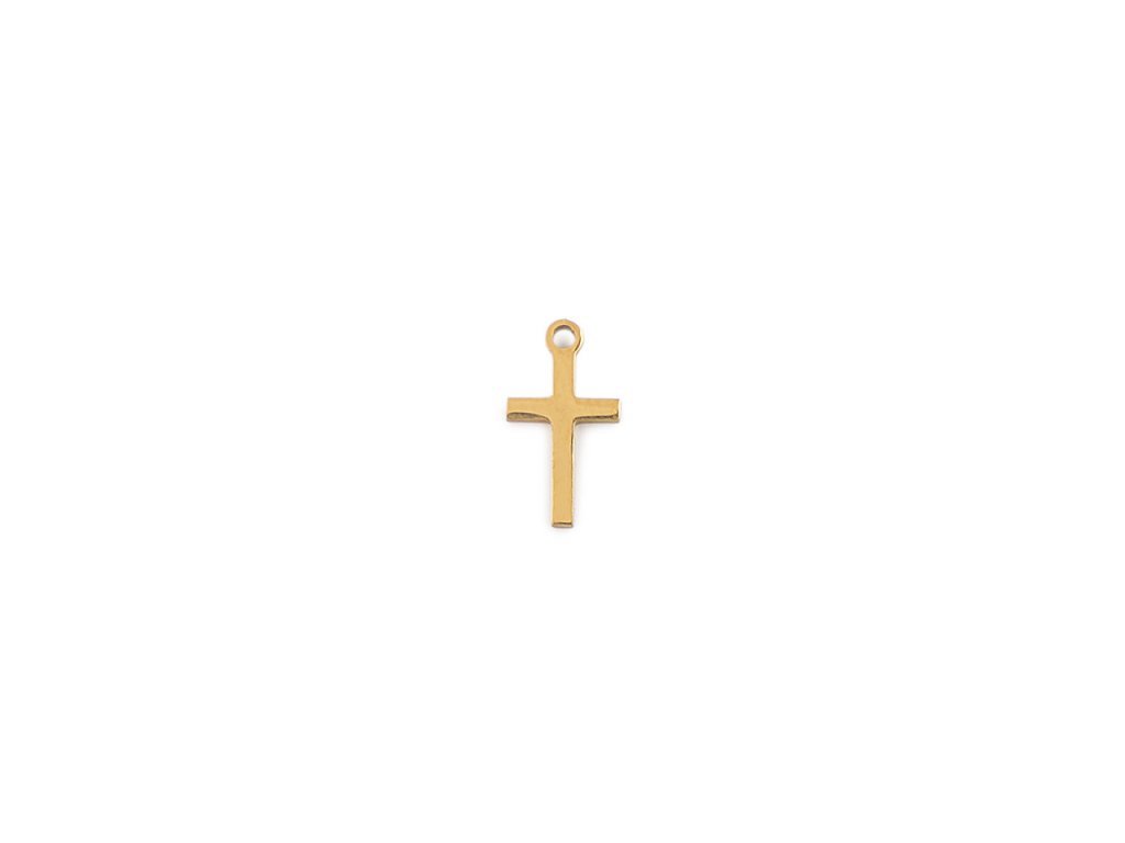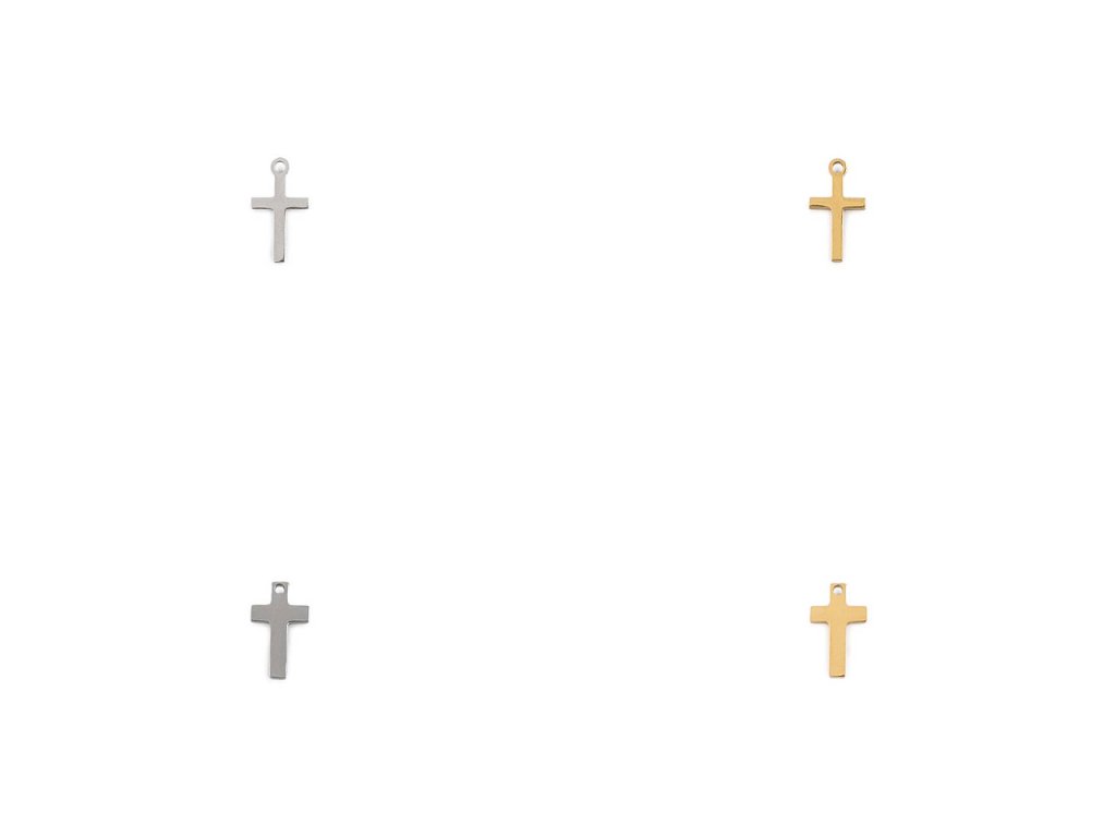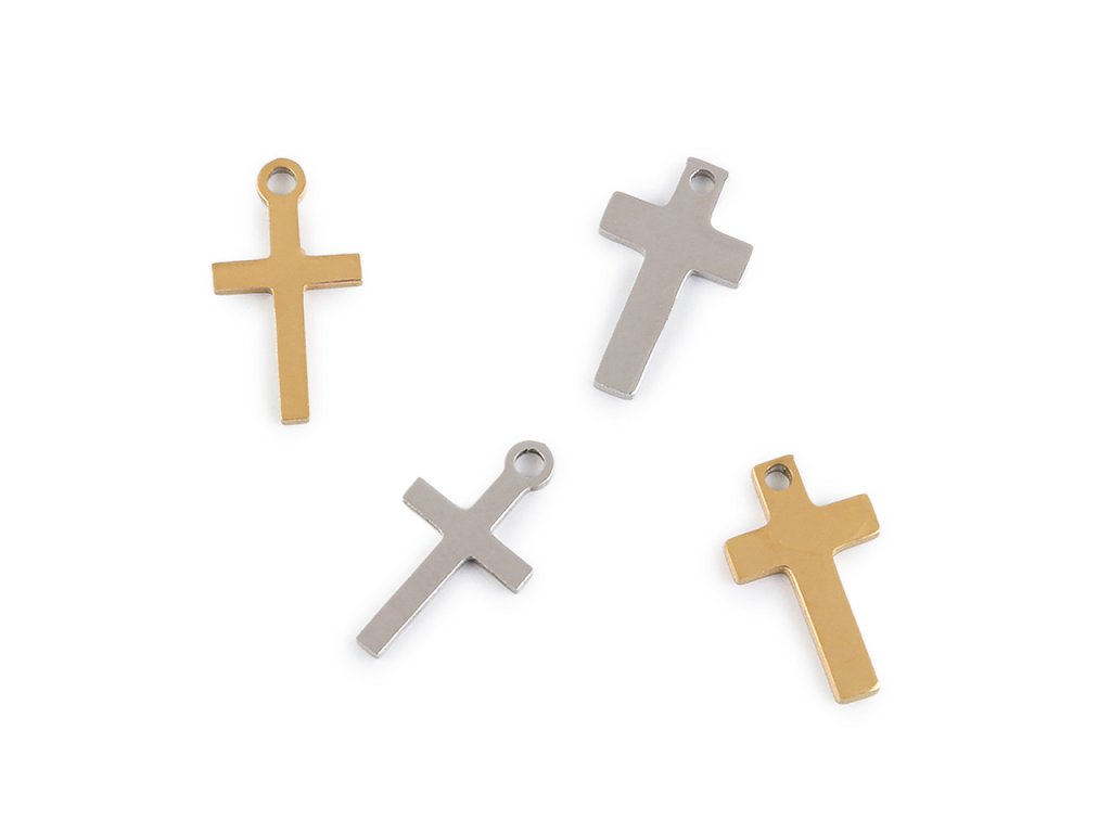 Malý přívěsek křížek z nerezové oceli se hodí k výrobě náramků, na náušnice i na náhrdelník. Pozornost upoutá i jeho vysoký lesk. Nahoře má průvlek na zavěšení. Můžete využít spojovací kroužek, šlupnu i šňůrku na zavěšení.- Rozměry: 7 x 12 mm