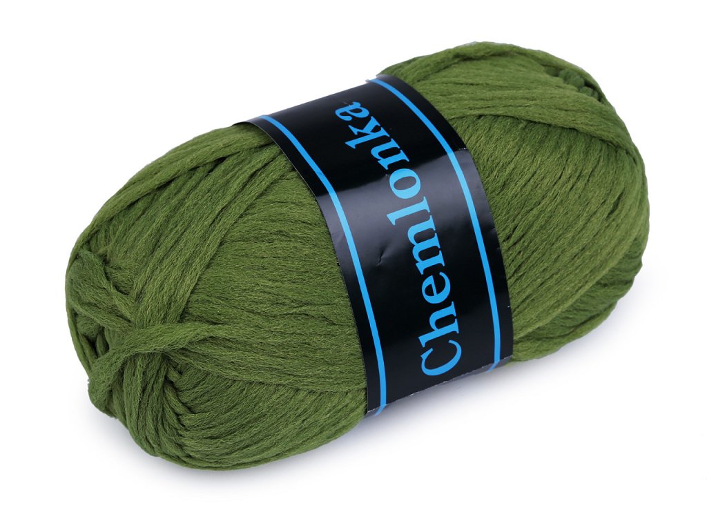 Chemlonka se používá zejména pro výrobu tzv. afrocopánků, ale také pro výrobu domácích přezůvek, koberečků, chňapek a často i jako příplet při pletení ponožek a svetrů a jiné pletáže. Velikost jehlic: 4 - 4,5 Velikost háčku: 2,5 Tloušťka příze je cca 2 mm.- Průměr: cca 2 mm
