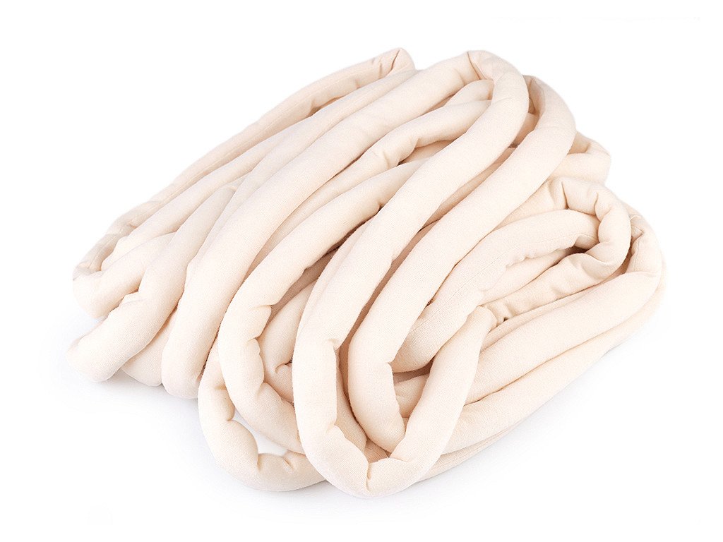 Příze Marshmallow je objemná, ale lehká. Tvoří ji tunýlek pletený z jemné hladké bavlny vyplněný vláknem. Dobře se vám s ní bude pracovat velkými jehlicemi nebo rukama. Příze je vhodná na výrobu dek, maxi přehozů na postel, polštářů a podobných doplňků. Využijete ji také na výrobu rukou a nohou k různým postavičkám (např. skřítkům, panenkám či andělům).- Průměr: 20 mm