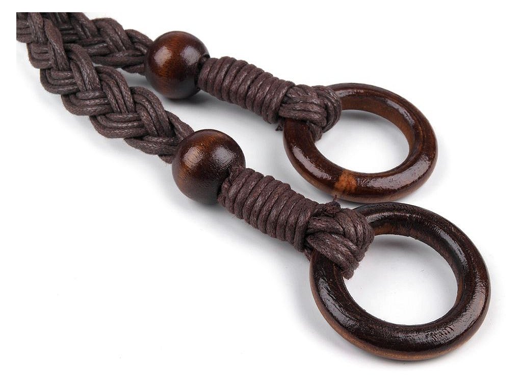 Ucha jsou pletena z textilní voskované šňůry, na obou stranách zakončena korálky a dřevěnými kroužky. Ucha mají šíři 1,5 cm. Kroužek na koncích má vnější průměr 44 mm, vnitřní průměr 28 mm.