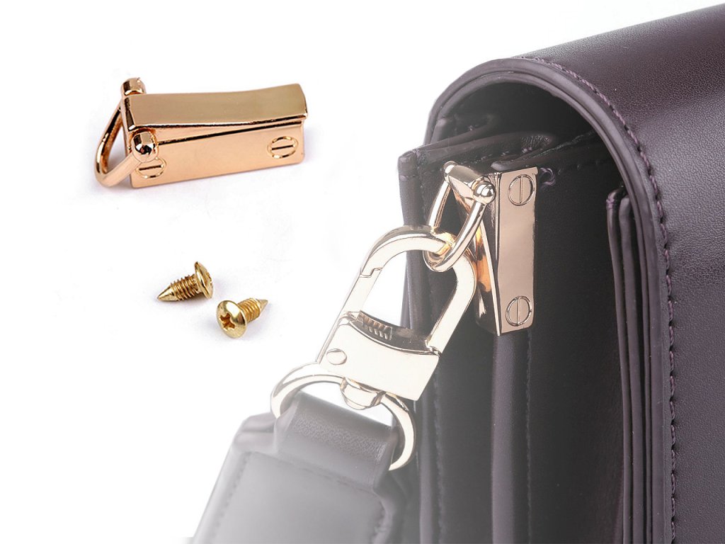 Designový průvlek je vhodný na menší kabelky a psaníčka. Připevňuje se pomocí šroubků, které jsou součástí balení. Rozměry č. 1 a 3 jsou 14 x 25 mm (délka 25 mm je bez očka). Hloubka je 9 mm. Průvlek č. 1 a 3 je vhodný pro materiál s tloušťkou 4 mm. Rozměry č. 2 a 4 jsou 15 x 30 mm (délka 30 mm je bez očka). Hloubka je 9 mm. Průvlek 2 a 4 je vhodný pro materiál s tloušťkou 6 mm.- Délka: 25; 30 mm