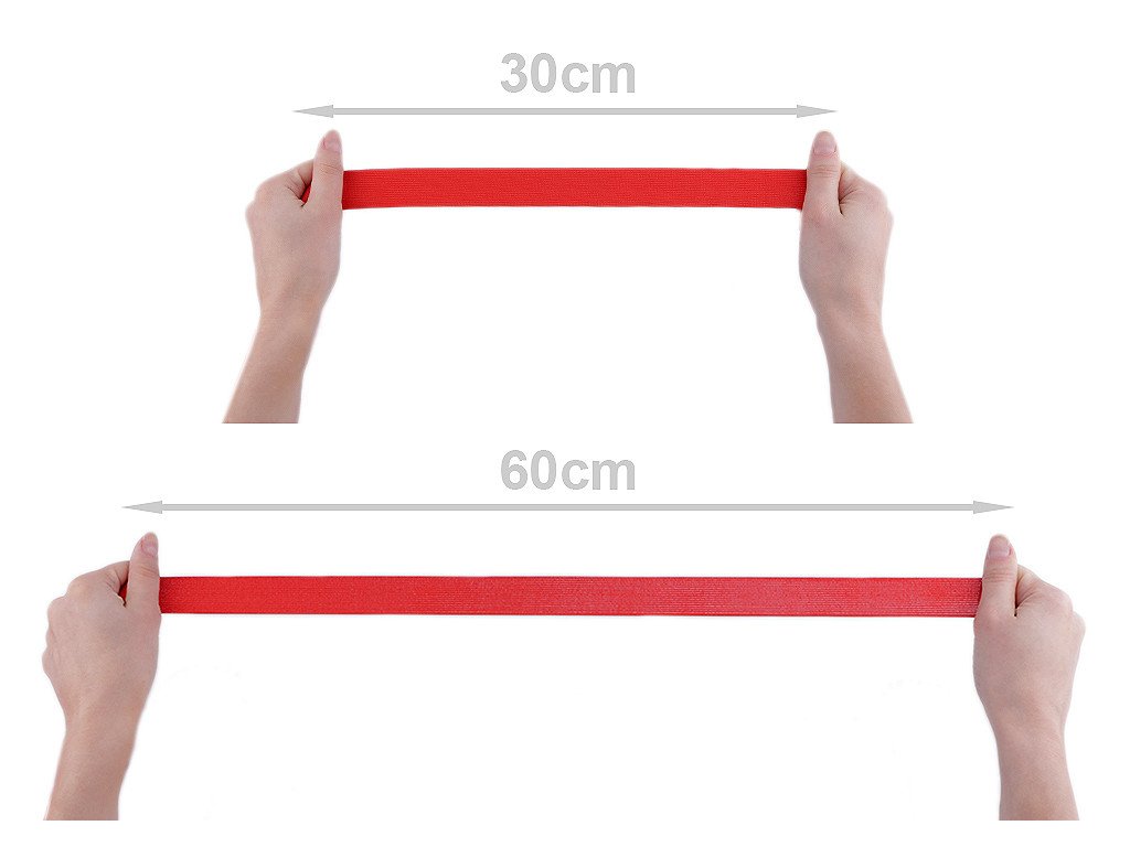 Hladká pruženka je elastická (tažná), po roztažení se vrátí zpět do původního stavu. Je jemná v tahu. Použití: Pruženka se nejčastěji vkládá do oděvů do pasu nebo pod prsy, aby oděv lépe držel na daném místě, např. do kalhot, šatů, bund apod. Je vhodná také na sukýnky.- Šíře: 28 mm