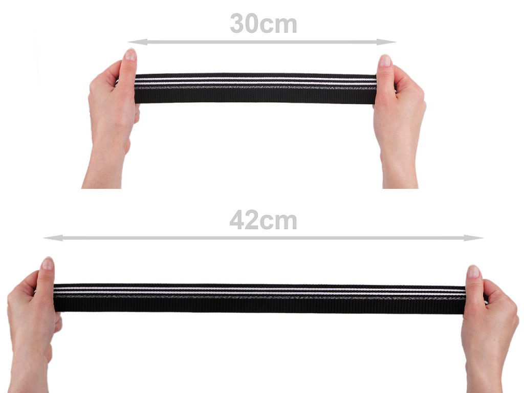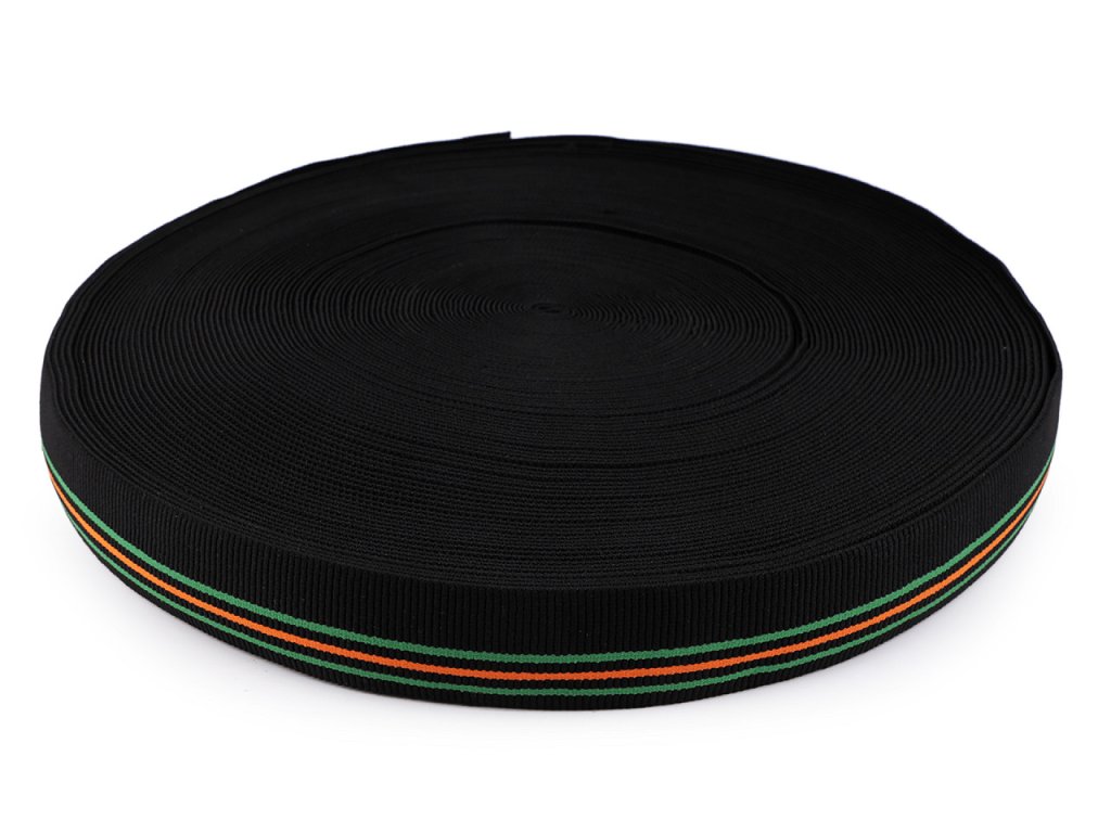 Pruženka s barevnými proužky je měkká, příjemná na dotek a jemná v tahu. Skvěle se hodí na lemy mikin, šatů ve sportovním stylu, tepláků i bund.- Šíře: 40 mm