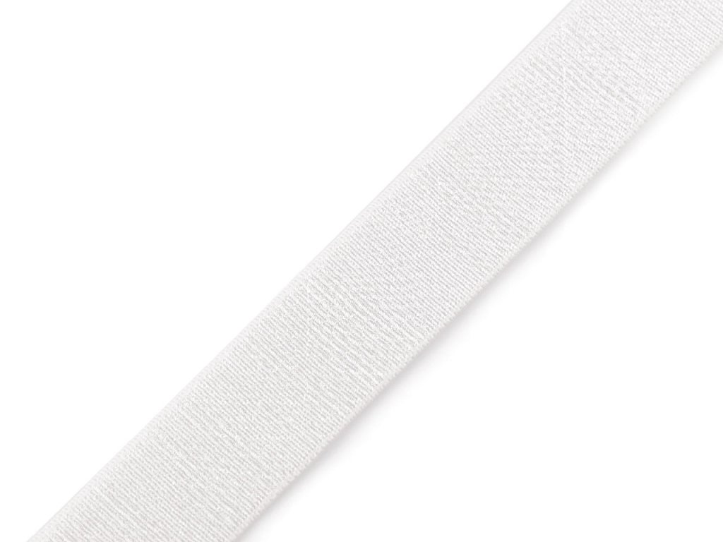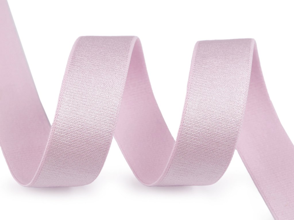 Plochá saténová pruženka je vhodná k výrobě spodního prádla (ramínek k podprsenkám), podvazků, tílek, triček apod. Horní stranu má hladkou a lesklou, na dolní je jemný plyš. Pruženka je pevná v tahu.- Šíře: 20 mm