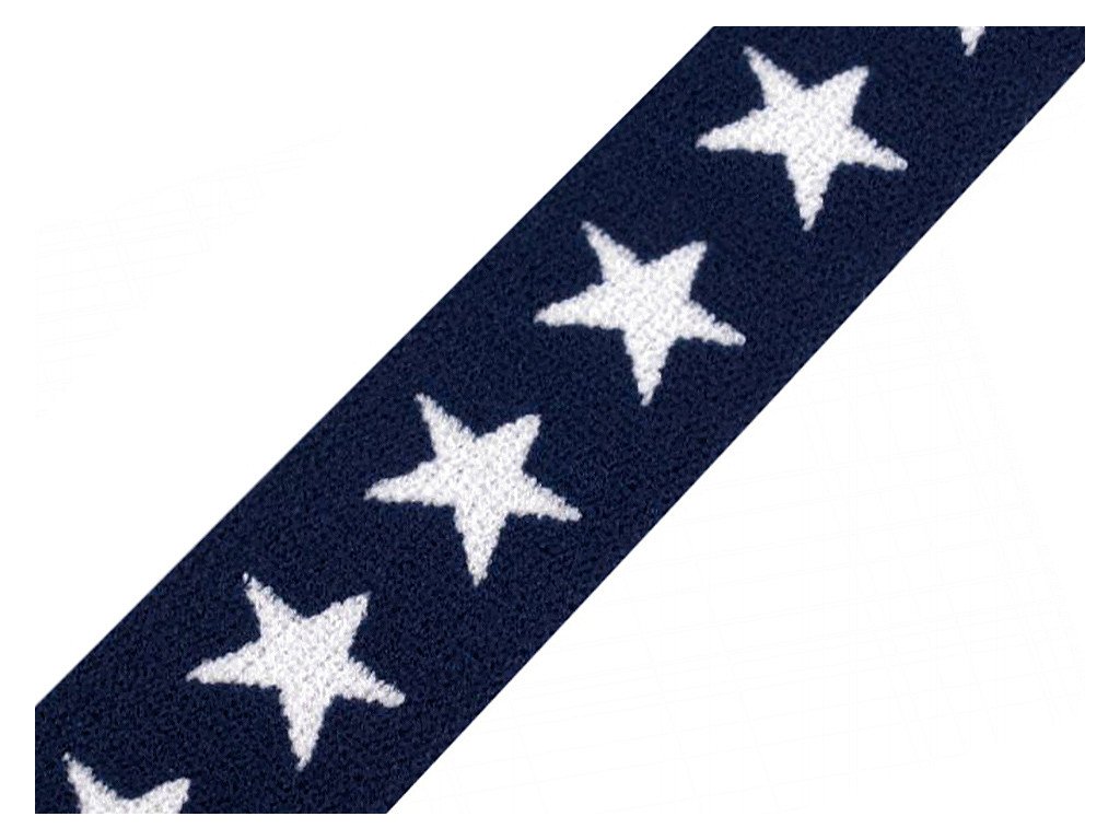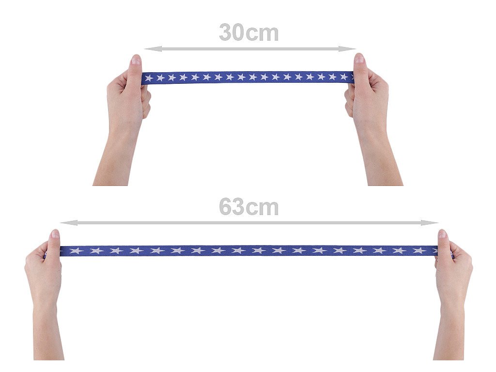 Pruženku zdobí stylové hvězdy. Je elastická (tažná), po roztažení se vrátí zpět do původního stavu.