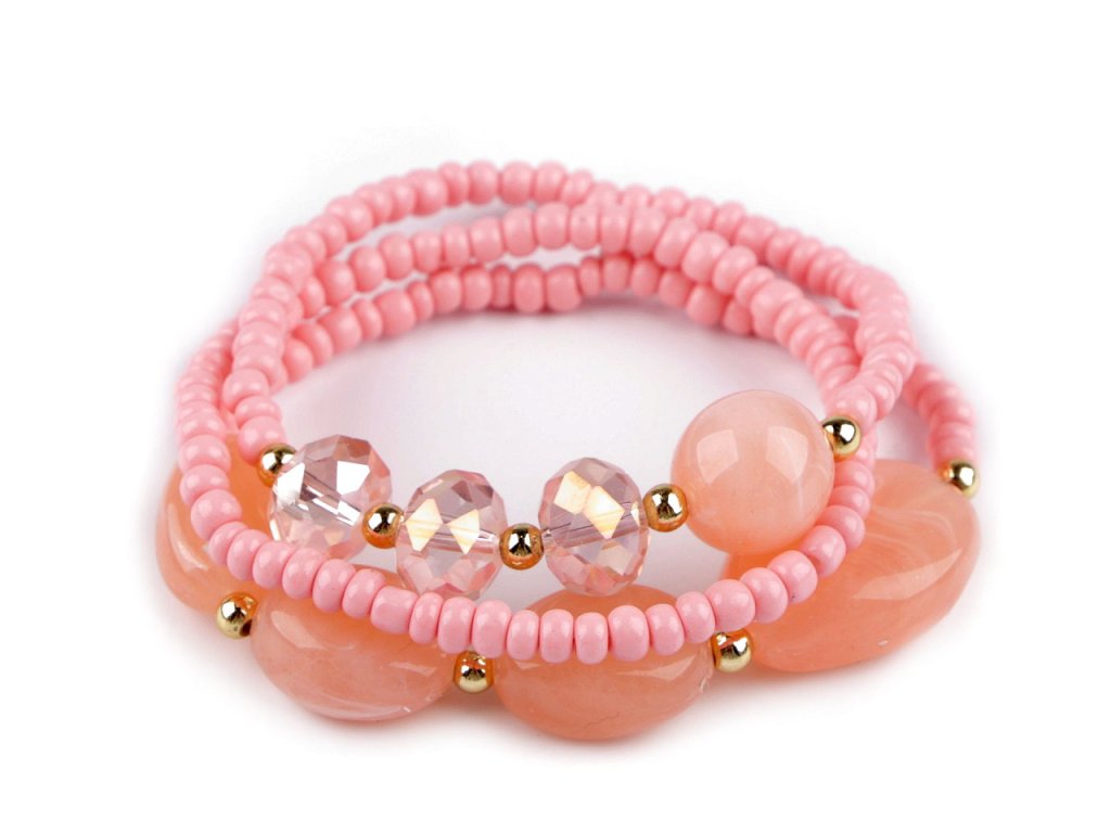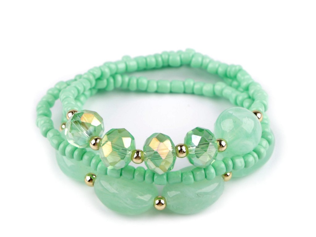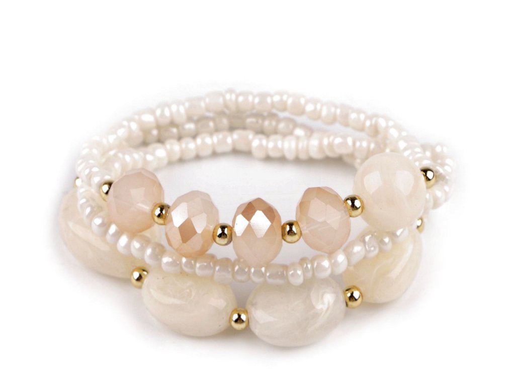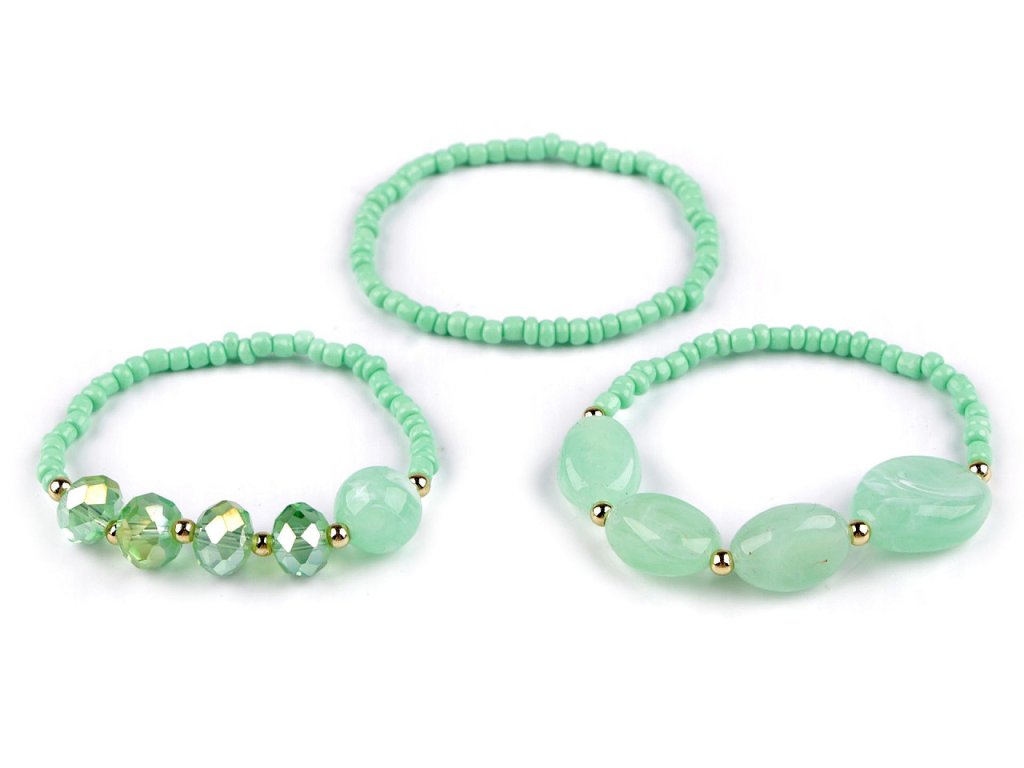 Sada 3 náramků je velice elegantní. Můžete je nosit všechny najednou nebo je použít samostatně. Design, který kombinuje drobné a větší korálky, vytváří harmonický vzhled, který se hodí k jakémukoliv outfitu. Náramky jsou pružné, sestavené z velkých broušených korálků, plastových kamenů a rokajlu. Díky pružence se dobře navlékají na ruku. Šířka celé sady je cca 3,5 cm.- Délka: 17 - 22 cm