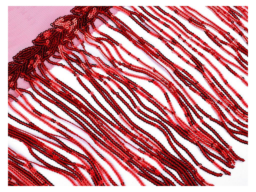 Prýmek monofilový s flitrovými třásněmi šíře 32 cm