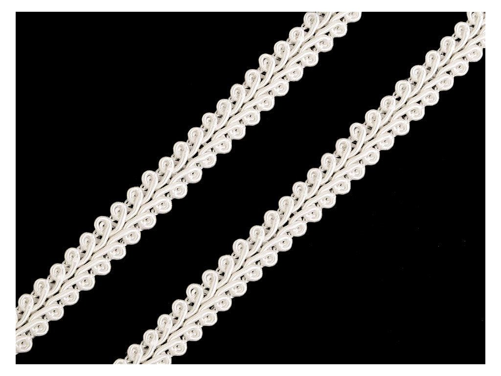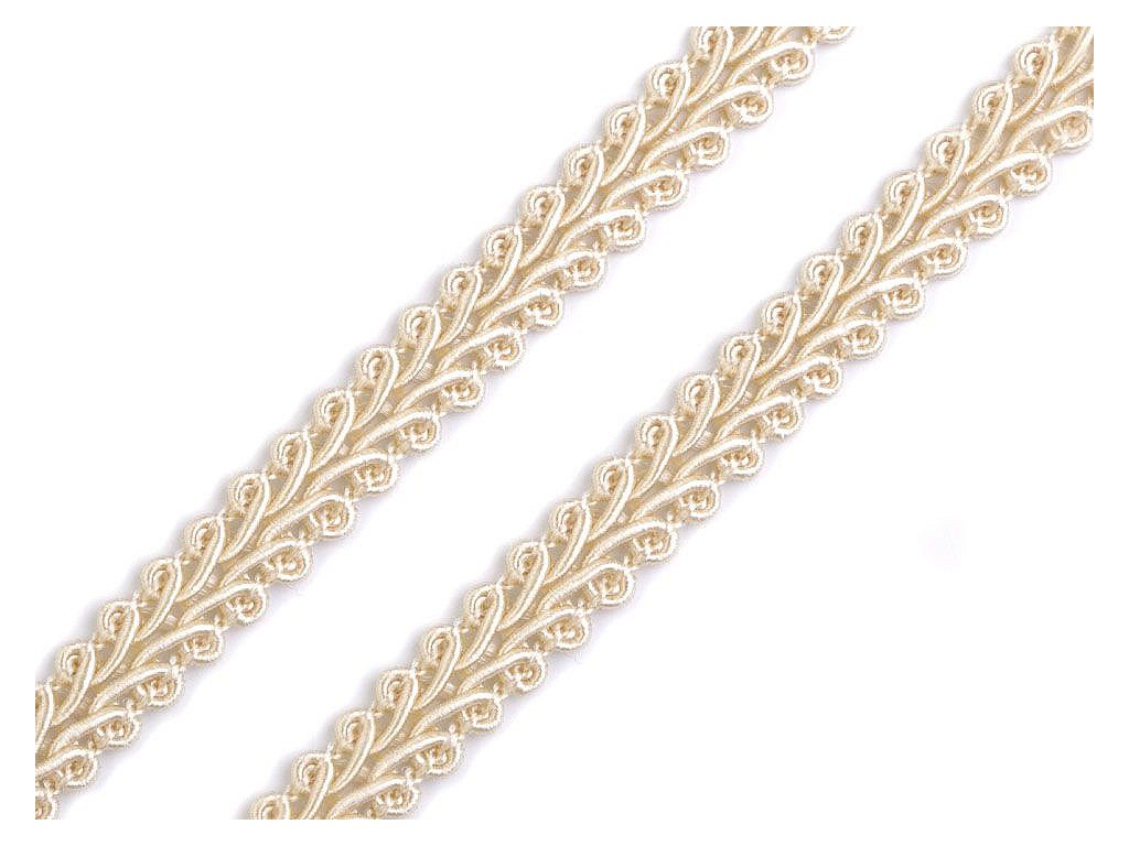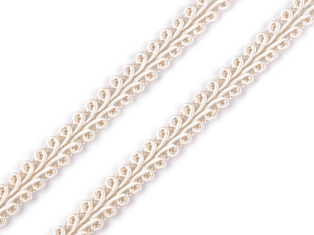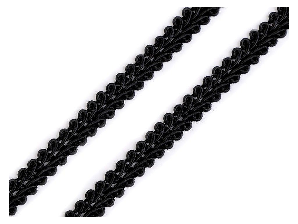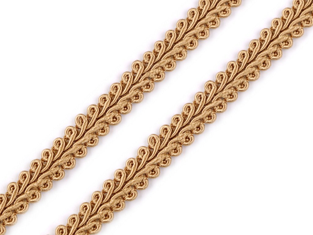 Elegantní prýmek dodá poutavý vzhled vašemu oblečení i doplňkům. Prýmek je pevný, není pružný. Použití: Prýmek můžete našít na halenky, sukně, kostýmy, korzety i šaty. Vynikne na kloboucích, taškách apod. Je vhodný také k olemování bytového textilu. Vyrobeno v Itálii.- Šíře: 8 mm