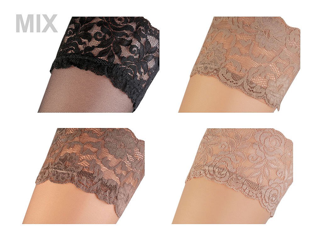 Samodržící punčochy jsou vyrobeny z nejlepší příze, díky dvěma silikonovým páskům přiléhají k noze a zvyšují svobodu pohybu. Při nošení se umocňuje fantazie a žena se stává elegantní. Velikost 1-2 (délka nohy 23/24cm, výška postavy 152/164), 3-4 (délka nohy 25/26cm, výška postavy 164/170)- Velikost: 1-2