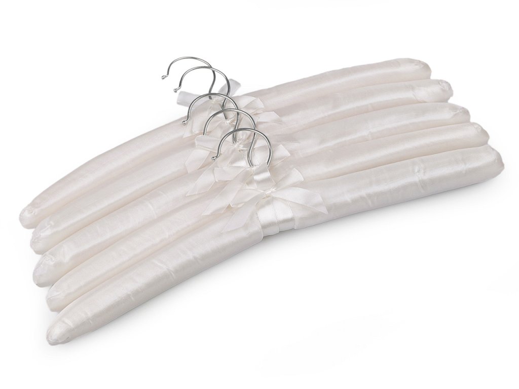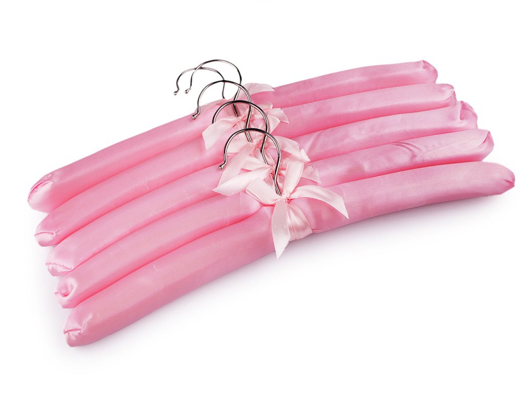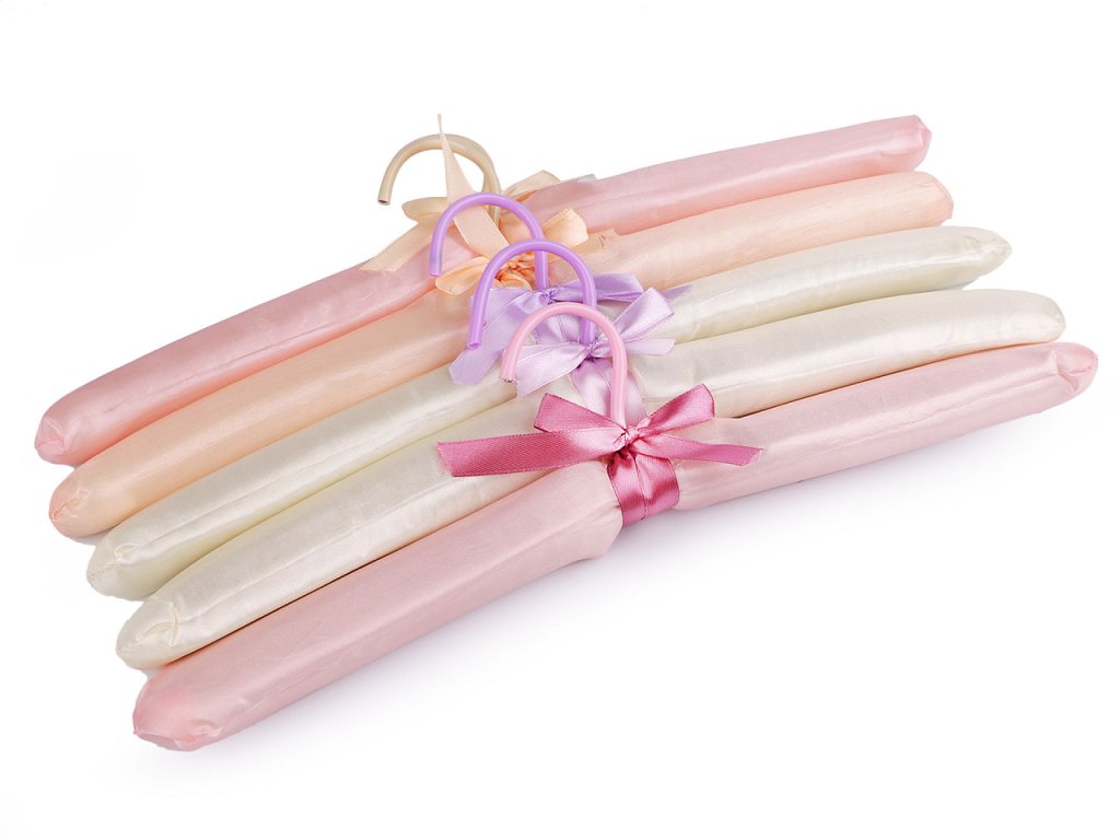Ramínko na oděvy ocení ve své domácnosti elegantní a romantické duše. Na dotek je měkké a potažené lesklým saténem. Ramínka jsou vhodná na svatební šaty, šaty pro družičky nebo na oděvy z jemných materiálů. Háček je otočný. Ramínko zdobí saténová mašlička. Barvy mašliček se mohou lišit. Barvy ramínek i mašliček mohou mít různé barevné odstíny.- Šířka: cca 38 cm
