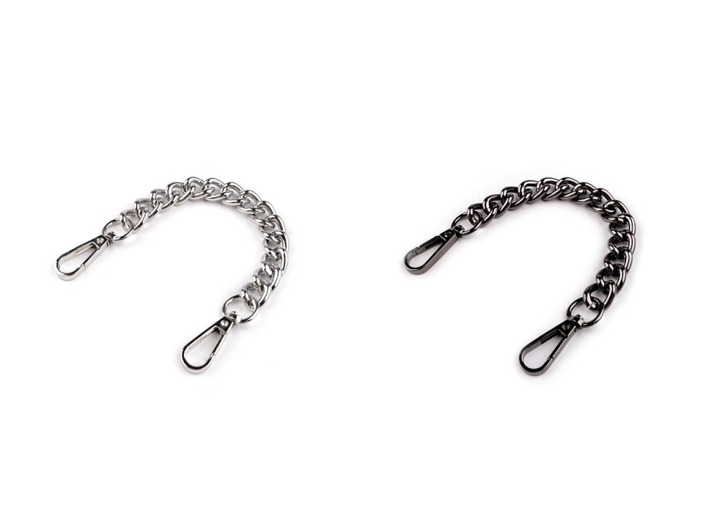 Krátký kovový řetízek využijete jako stylové ucho na kabelku, psaníčko a třeba i městský batoh. Na obou jeho koncích najdete připevněné karabinky. Řetízek není určený na velkou zátěž.- Šířka: 15 mm
