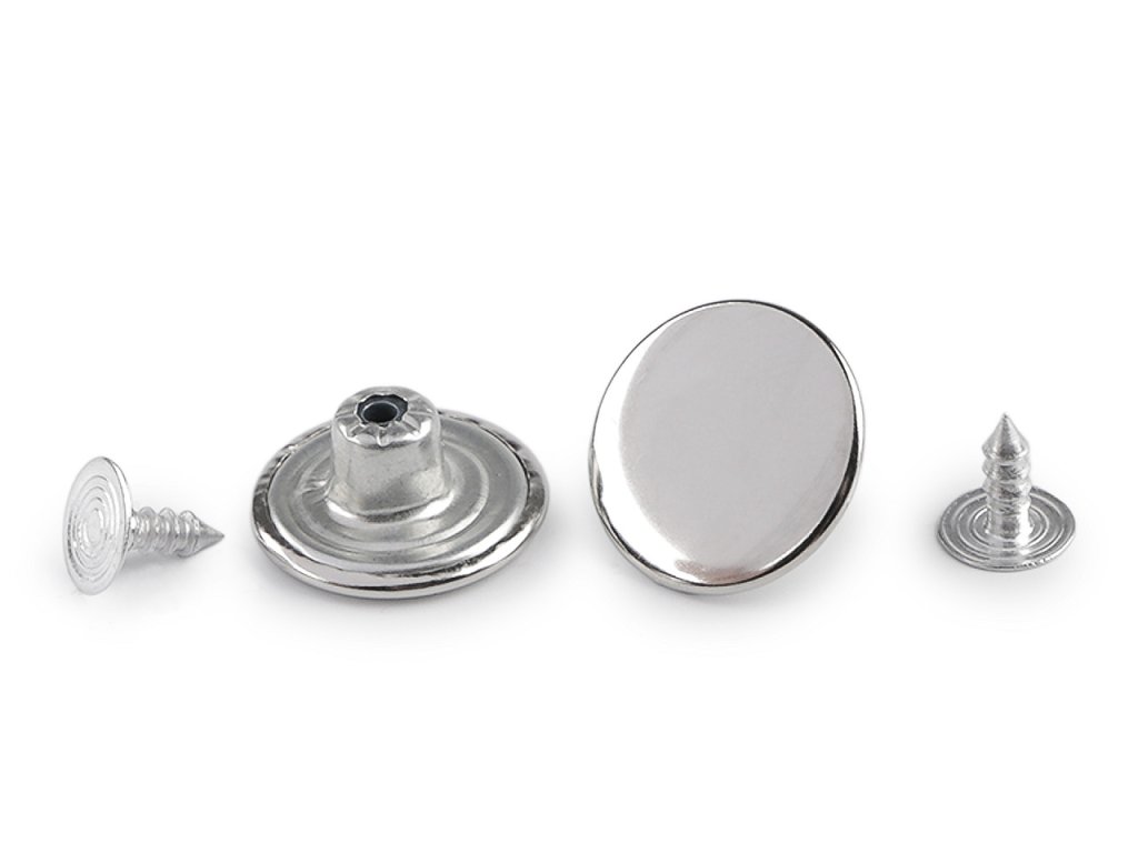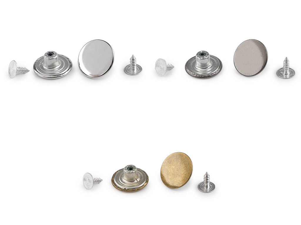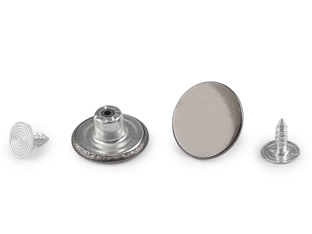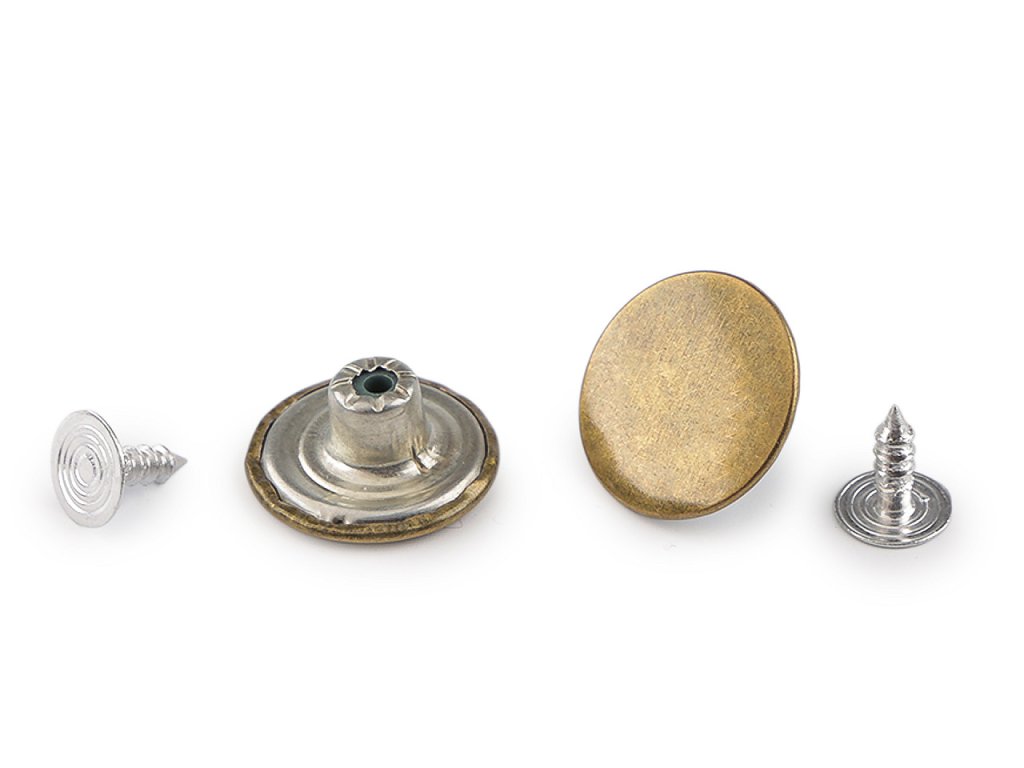 Kovový riflový knoflík se skládá ze dvou částí, které se do sebe musí narazit (například kladivem). Využijete ho na džíny, džínové sukně, šaty, bundy nebo vesty. Délka nýtu je 7,7 mm. Velikost knoflíků naleznete v této tabulce.- Průměr: 17 mm