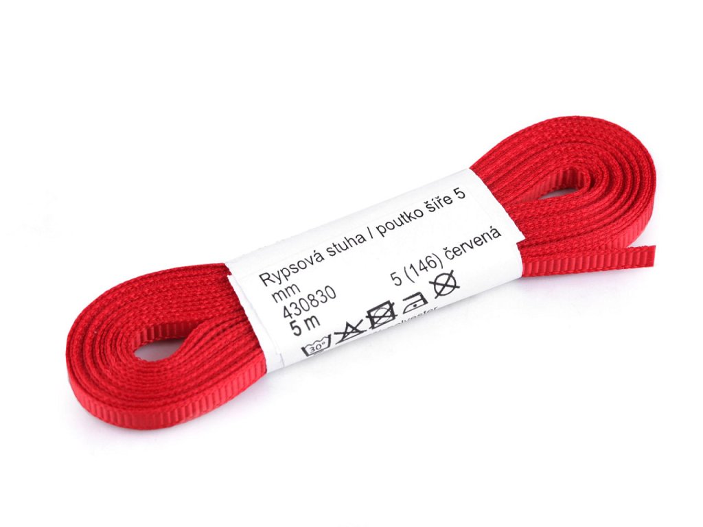 Kvalitní pevná stuha s hrubší rypsovou strukturou je jednostranná, zadní stranu má hladší. Stuha má jemný lesk. Použití: Stuhu využijete na balení dárků a k dekorování prostírání nebo ubrusů. Hodí se i ke zdobení oděvů. Je vhodná jako návlekový materiál na větší korálky apod. Poslouží vám také k výrobě mašliček a poutek na oblečení. Je vhodná na zdobení perníčků a na Velikonoce na zdobení vajíček.- Šíře: 5 mm