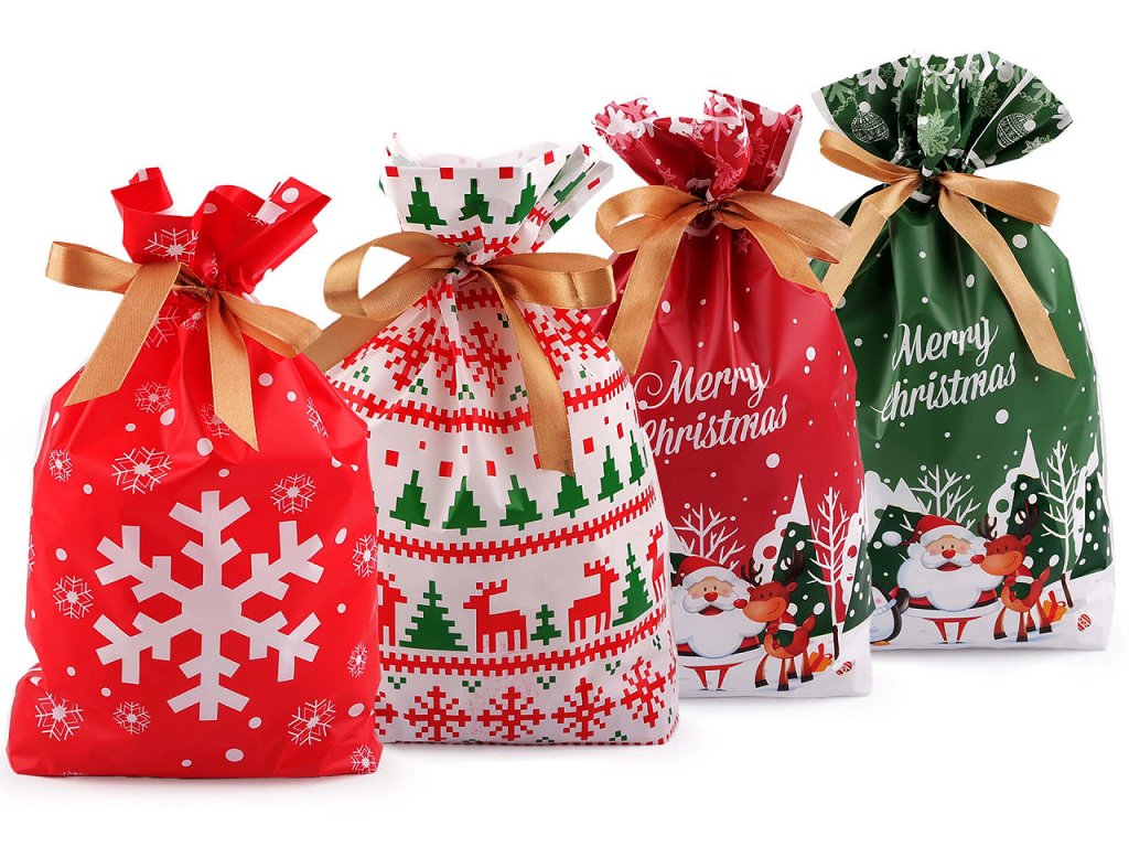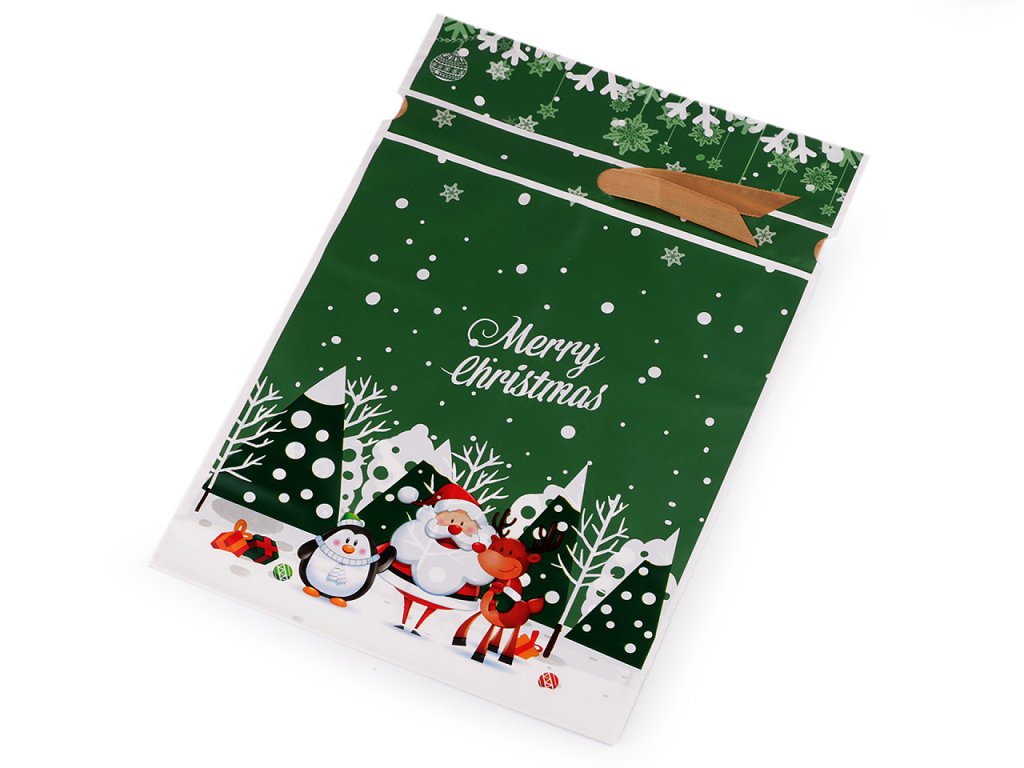 Velké stahovací sáčky s vánočními motivy se skvěle hodí na dárkové balení různých balených pochutin, ale také třeba kosmetiky, svíček a jiných maličkostí. Stahují se pomocí saténové stuhy. Sáčky jsou matné, zdobené potiskem z obou stran. Mají rozšířené dno. Výška sáčku po stuhu je 24 cm. Rozměry variant se mohou lehce lišit.- Rozměry: cca 23 x 33 x 6,5 cm