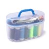 Sada na šití v praktickém plastovém boxu obsahuje všechny základní věci, které potřebujete k šití nebo opravení vašeho oblečení. Box se skládá ze dvou částí - z kufříku a odnímatelného patra uvnitř. Zapínání na boxu se může lišit. Obsah sady: - barevné nitě (10 ks) - kompaktní balení jehel v plastové krabičce - oboustranný krejčovský metr - cm, inch (150 cm) - navlékač nití - navlékač pruženek - kovový náprstek - svazek spínacích špendlíků (2,7 cm) - kleště na nehty - kovové patentky (Ø10 mm) - cvakačky Obsah balení se může lišit.- Rozměry: 7 x 9,5 x 14 cm