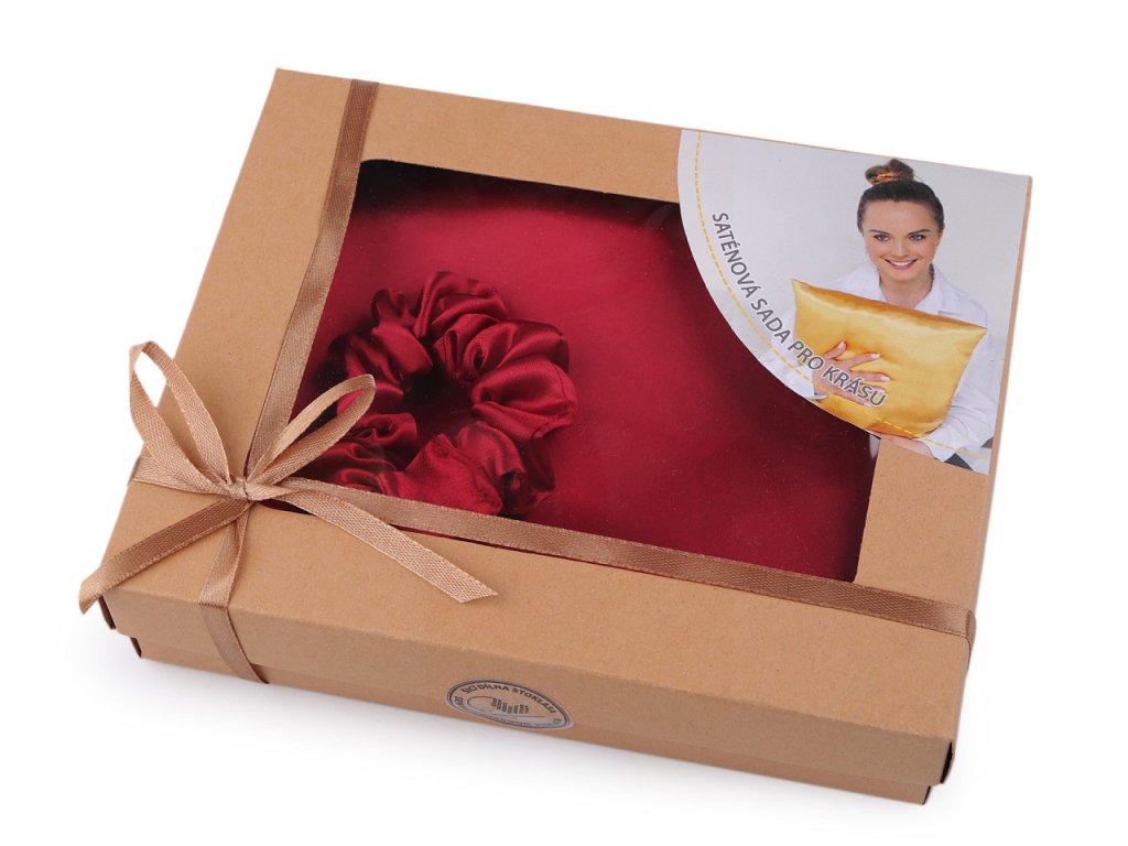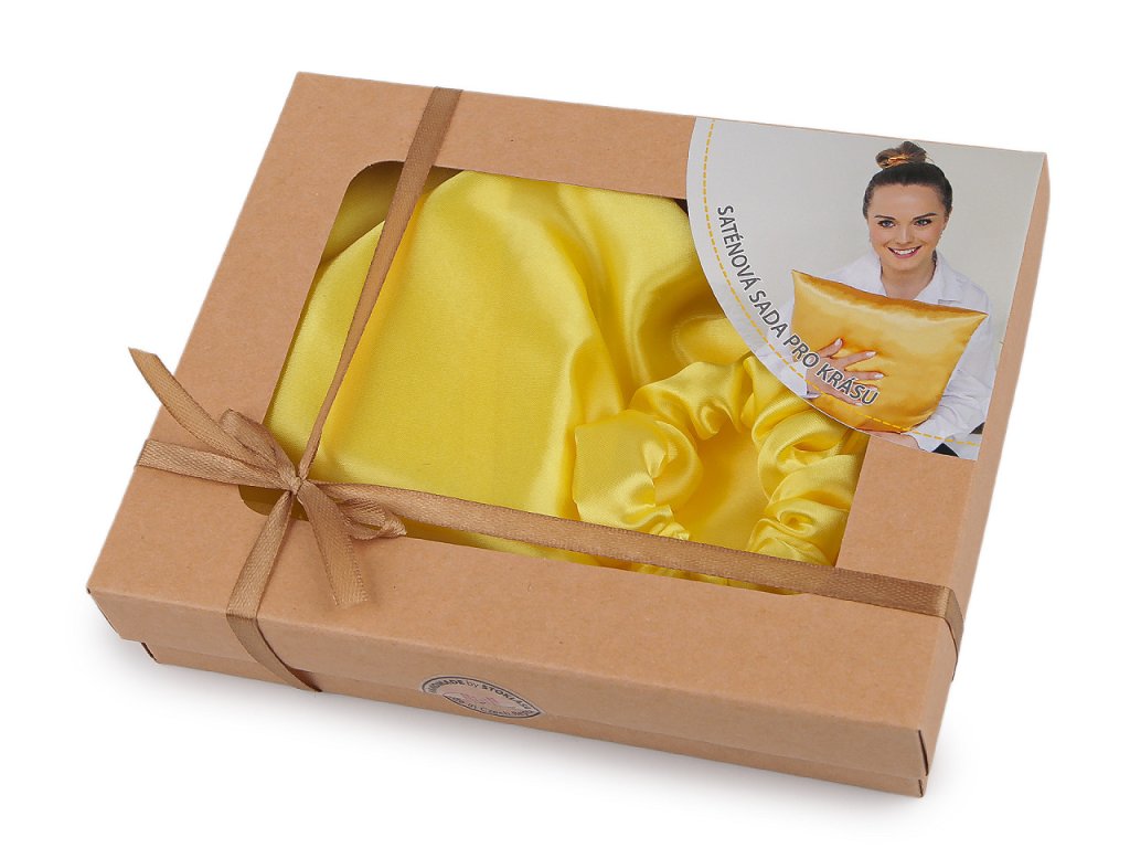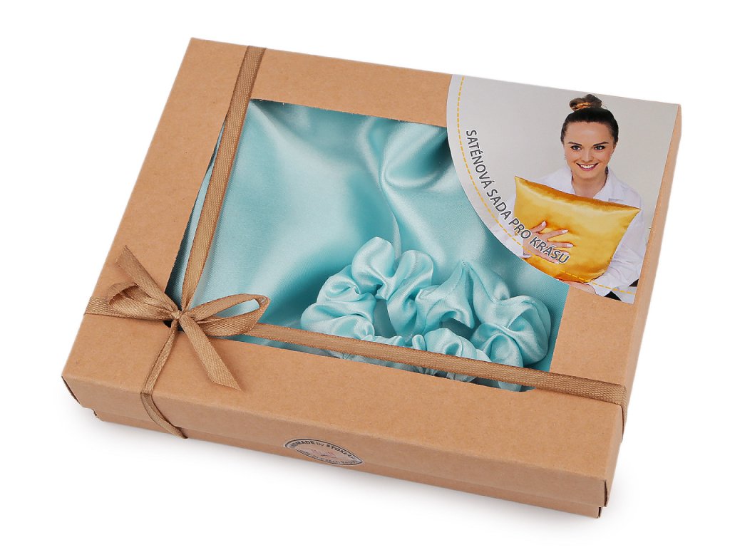 Saténová Beauty sada na spaní, povlak a scrunchie gumička