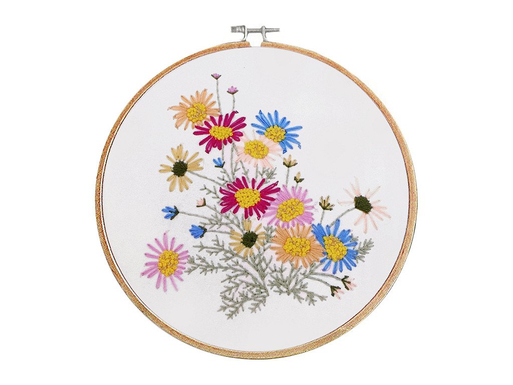 Se sadou na vyšívání vytvoříte pozoruhodné obrazy kytic. Vyšívá se na předtištěnou tkaninu pomocí příze mouline. V sadě najdete tkaninu s předlohou, sadu barevných přízí, obrázkový návod, vyšívací jehly a bambusový kruh, který vám poslouží rovněž jako rámeček pro hotový obrázek.- Průměr: 20,2 cm