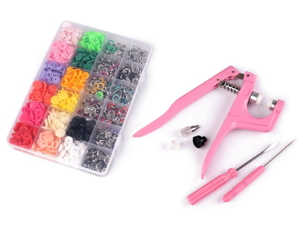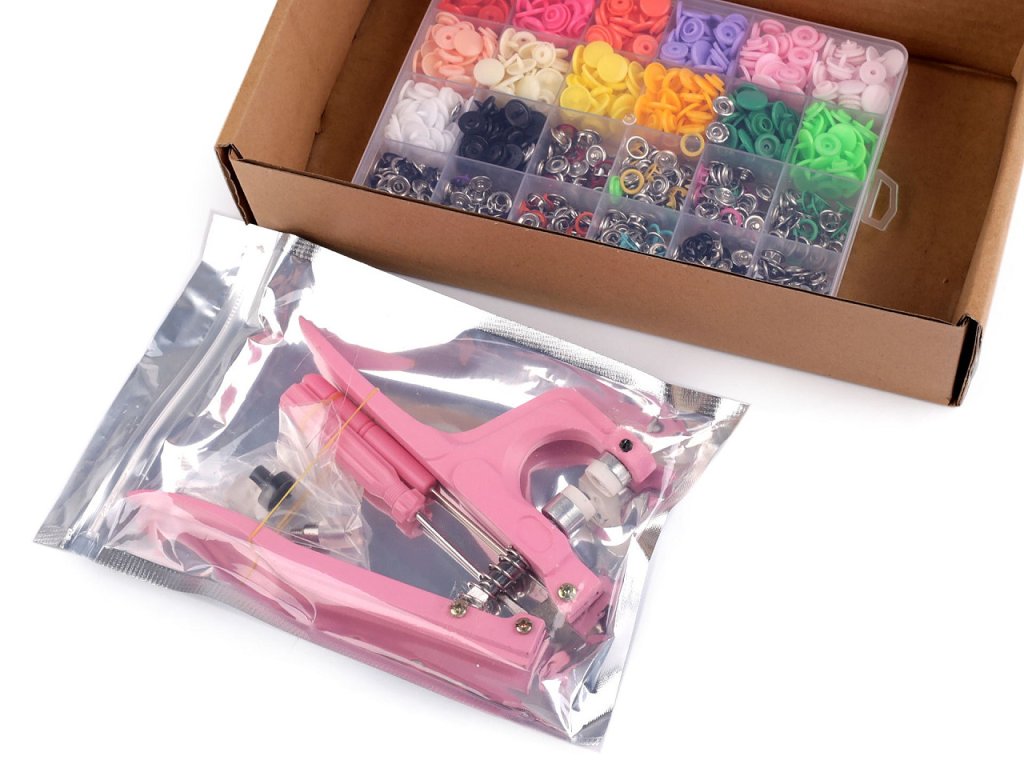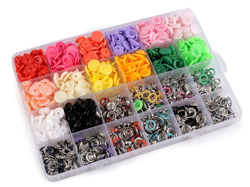 Plastové a kovové patentky využijete jako zapínání na oblečení a doplňky. K aplikaci vám pomůže ruční lis, který je součástí sady. V sadě najdete plastové patentky velikosti 12 mm ve 13 barvách po cca 10 párech a kovové patentky velikosti 10 mm v 10 barvách po cca 10 párech. Velikost patentek naleznete v této tabulce.- Průměr: 10; 12 mm