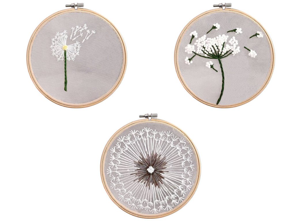Sada vyšívání s předtištěným motivem, pampeliška na tylu