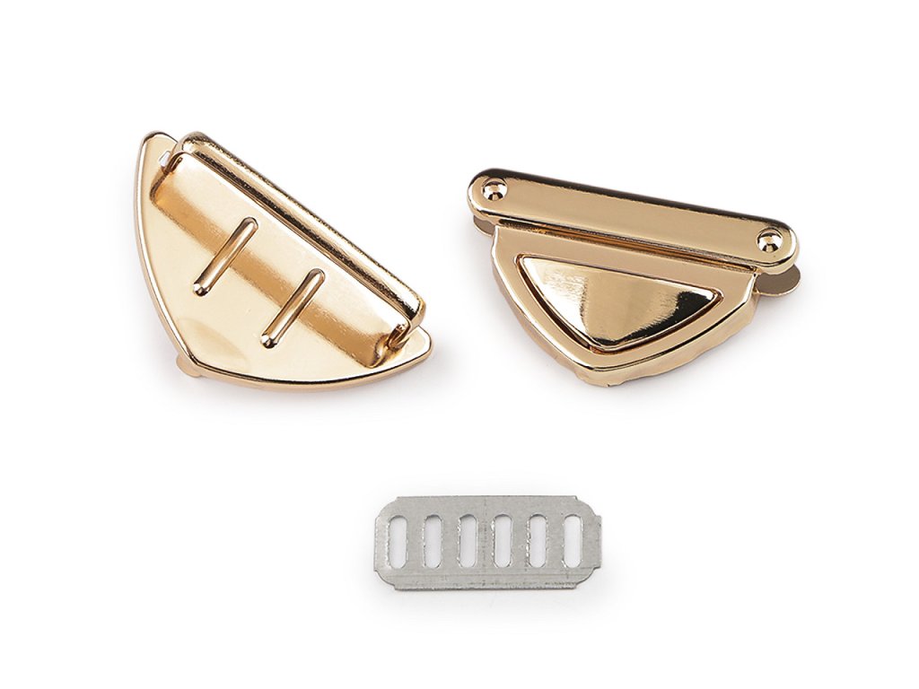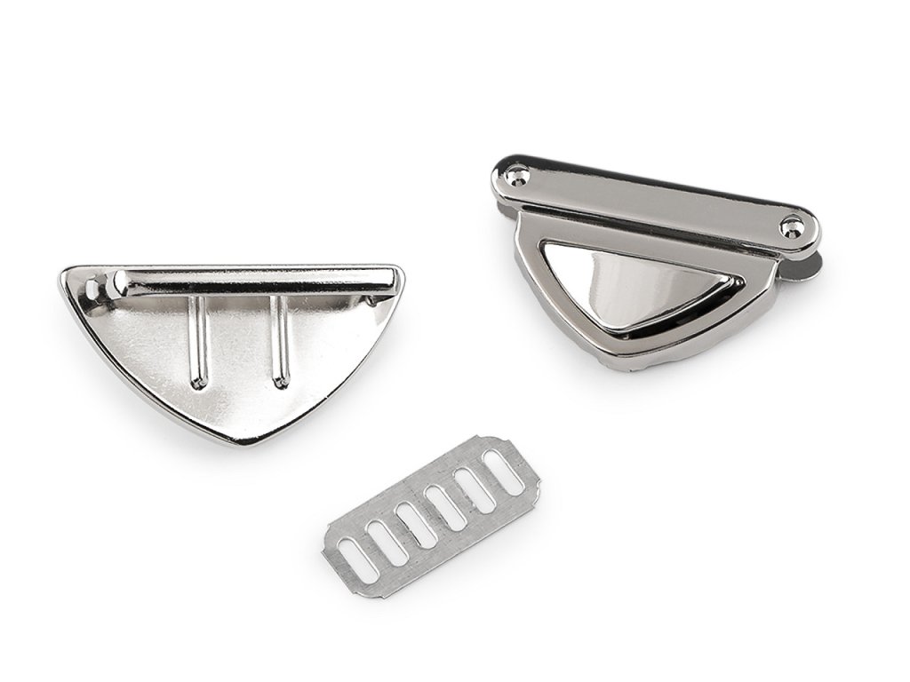 Klasické zapínání využijete na tašku, kabelku i batoh. Vyniká kvalitním zpracováním. Sada se skládá ze tří dílů. Plíšek se připevní na vnitřní část tašky, díl s nožkami na vnější část (nožky se zaháknou do plíšku a roztáhnou) a třetí díl se zoubky na její chlopeň. Díl na chlopeň se upevní tak, že rozevřete čelisti se zoubky a mezi ně vložíte materiál, na který chcete zapínání upevnit. Následně čelisti sevřete - zoubky zamezí pohybu látky. Rozměry: - plíšek: 12 x 26 mm - díl s nožkami: 22 x 42 mm - díl na chlopeň: 23 x 40 mm Celkové rozměry po zapnutí jsou 42 x 27 mm.- Rozměry: 42 x 27 mm