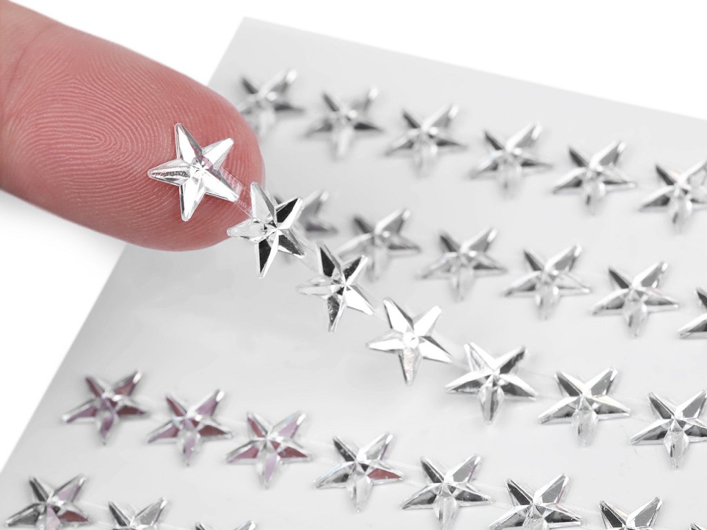 Dekorační samolepicí hvězdy jsou vhodné na scrapbooking. Všechny jsou nalepené na jednom archu podkladové folie, ze které je pohodlně odlepíte. Hvězdy v dlouhých sloupcích jsou navzájem spojeny lepicím proužkem, takže tvoří pásky. Celkem zde najdete 7 pásků (v každém je 26 hvězd). Hvězdy můžete i jednotlivě nastříhat. Doporučujeme je lepit na suchý, hladký a pevný povrch. Samolepicí hvězdy využijete ke zdobení přáníček, krabiček, rámečků fotografií, květináčů, fotoalb apod. Také se hodí k aranžování vánočních dárků a zimních dekorací.- Průměr: 10 mm