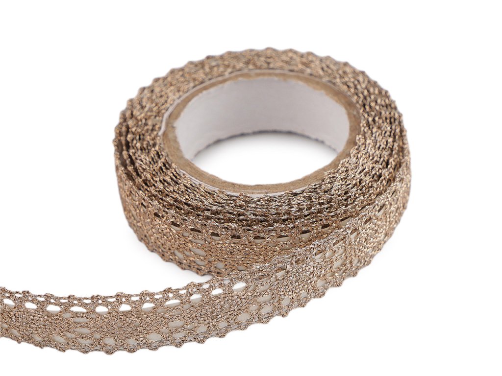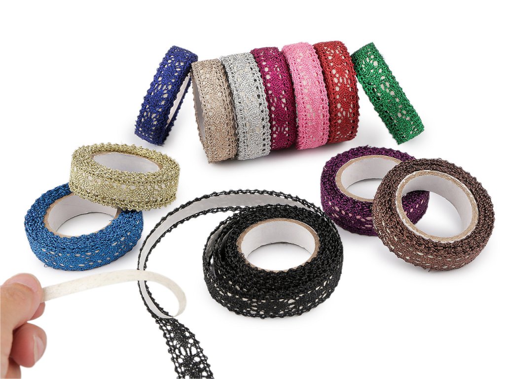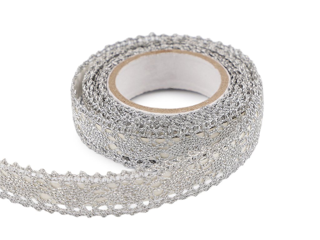 Samolepicí krajka s metalickým efektem působí luxusním dojmem, vašim výrobkům dodá lesk a slavnostní nádech. Práce s ní je velmi jednoduchá, stačí odstranit spodní krycí papír a samolepicí vrstva je připravená k lepení. Krajku využijete na ozdobení krabiček, dárků, přáníček, pozvánek, jmenovek, deníků, alb apod. Hodí se i k dekoračním účelům v interiéru. Dá se používat celoročně, je skvělá i na vánoční a svatební tvoření. Je zabalaná v transparetní krabičce s otvorem k zavěšení na prodejní stojan.- Šíře: 15 mm