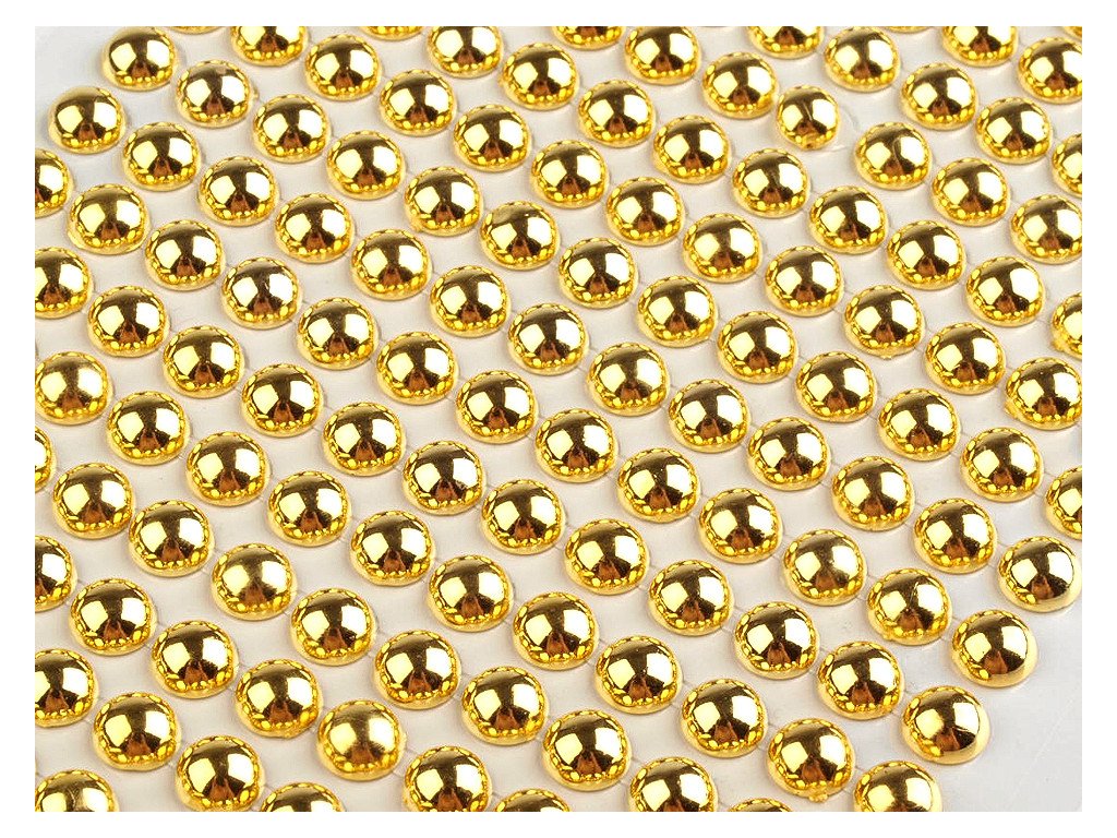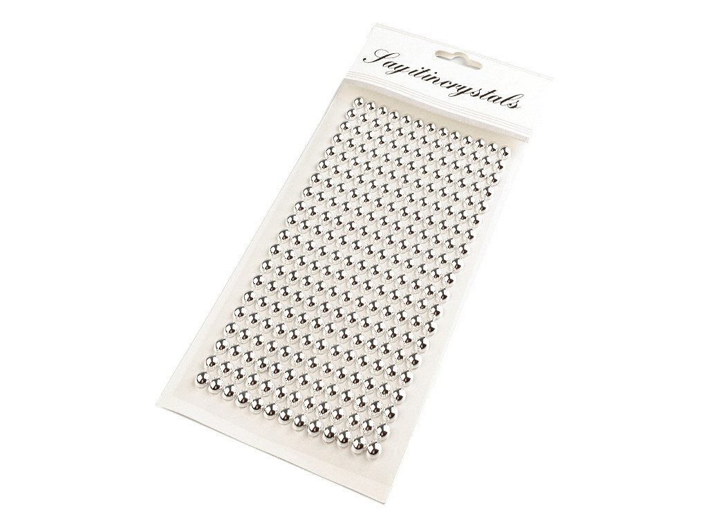 Půlkulaté samolepicí perly s metalickým leskem využijete k dekorování v technice scrapbooking. Všechny perly jsou nalepené na jednom archu podkladové folie, ze které se pohodlně odlepí. Perly v řadách jsou navzájem spojené lepicím proužkem, takže tvoří pásky. Celkem zde najdete 20 pásků (v každém je 13 perel). Můžete je i jednotlivě nastříhat. Doporučujeme je lepit na suchý, hladký a pevný povrch. Samolepicími perlami můžete ozdobit přáníčka, krabičky, květináče nebo fotoalba. Na kartě se může občas objevit špatná perla - odřená nebo matná.- Průměr: 6 mm