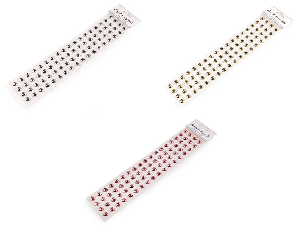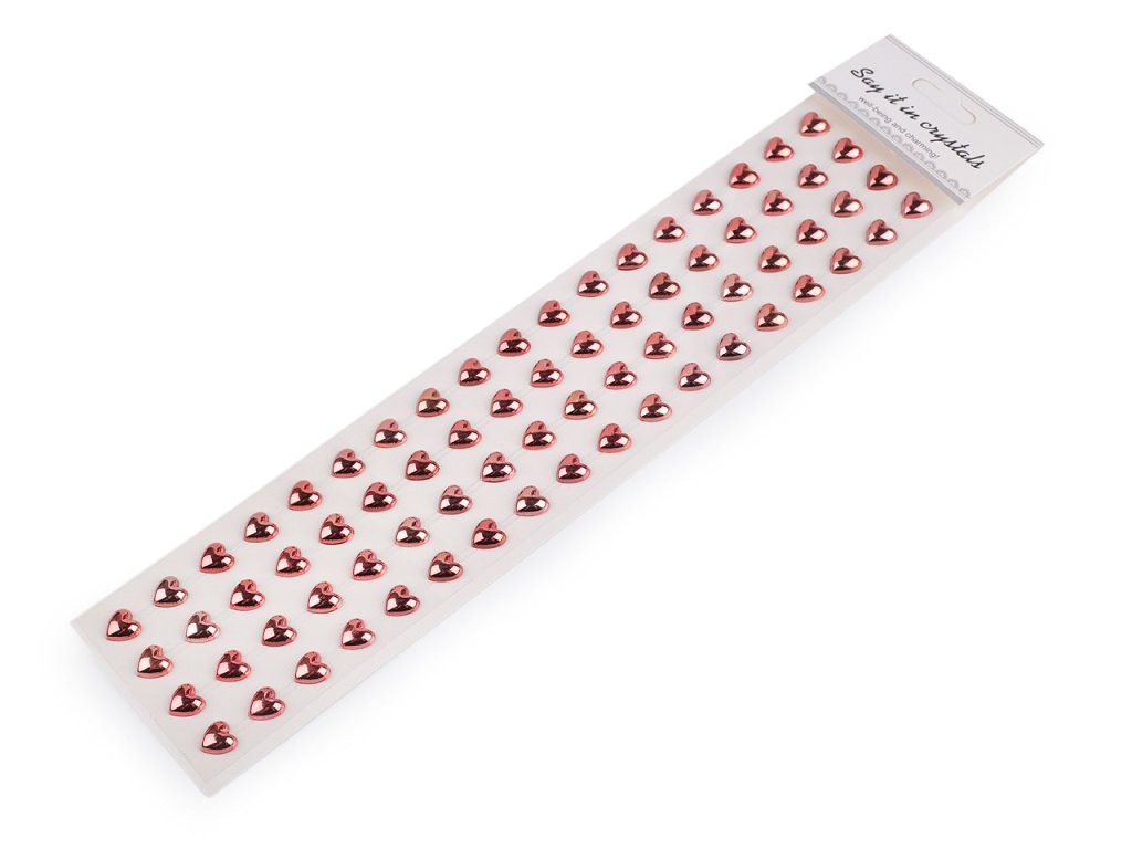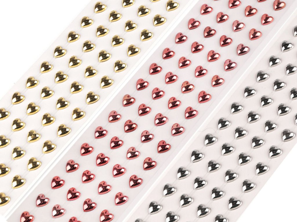 Kamínky ve tvaru srdcí jsou velice poutavé, mají metalický lesk. Všechny jsou nalepené na jednom archu podkladové folie, ze které je stačí sejmout. Srdíčka jsou v řadách navzájem spojená lepícím proužkem, takže tvoří pásky. Celkem zde najdete 4 pásky (v každém je 18 srdíček). Můžete ho i nastříhat na jednotlivé kousky. Ozdoby doporučujeme lepit na suchý, hladký a pevný povrch. Využijete je ke zdobení mobilů, tabletů, počítačů, přáníček, krabiček, zrcadel, rámečků fotografií, květináčů, deníků, fotoalb apod. V neposlední řadě je ocení i nevěsty k výrobě svatebních oznámení, vývazků, jmenovek apod.- Průměr: 10 mm