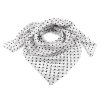 Puntíkovaný šátek je vzdušný a lehounký, velice příjemný na dotek. Je jemně průsvitný, doladí váš outfit, ať už si vezmete sako, halenku, svetřík či šaty. Šátky mohou mít špatné štítky, skutečné složení je 100% polyester.- Šířka: 85 cm