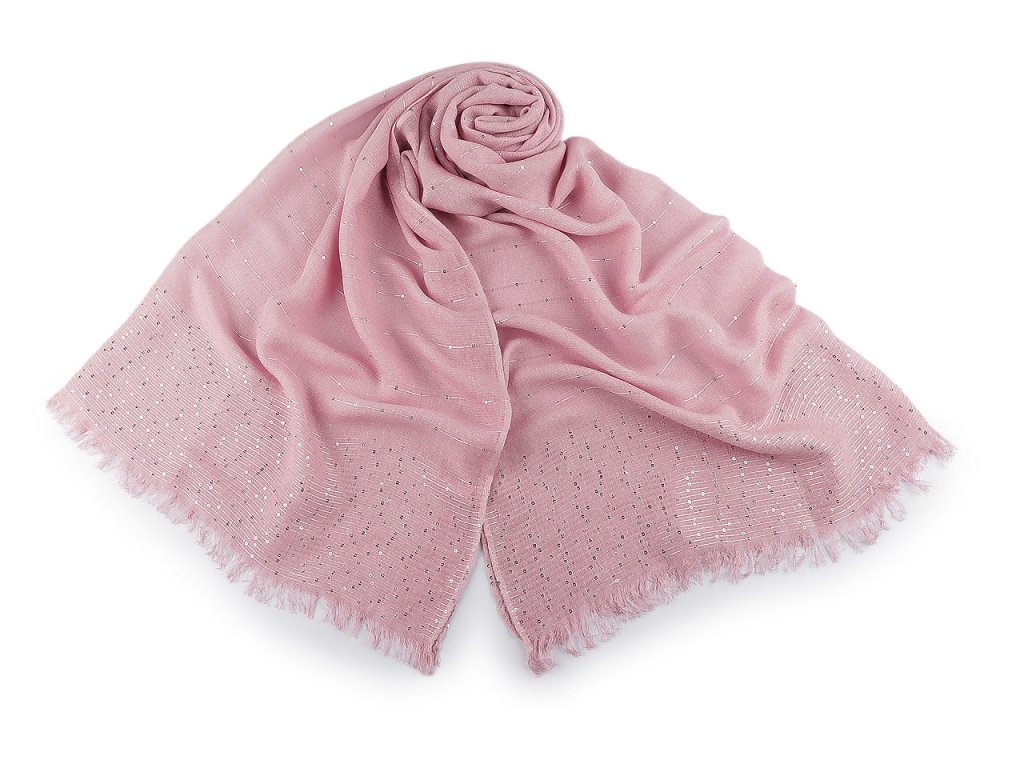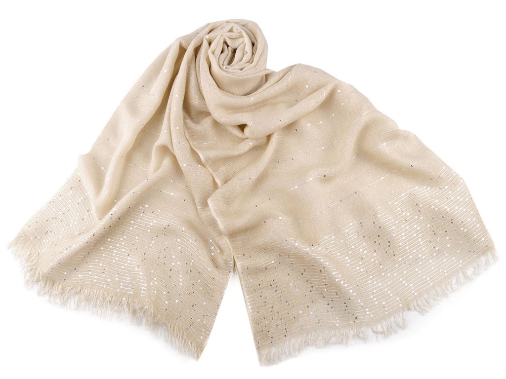 Elegantní bavlněný šátek s drobnými flitry je dokonalým doplňkem pro každou příležitost. Je oboustranný, flitry krásně zachycují světlo, vašemu outfitu dodají nádech luxusu. Materiál šátku je jemný a příjemný na dotek. Konce šátku jsou ozdobené jemnými třásněmi dlouhými 2 cm. Šátky mohou mít špatné štítky, skutečné složení je bavlna a polyester. Omlouváme se za toto nedopatření a děkujeme za pochopení.- Šířka: 80 cm