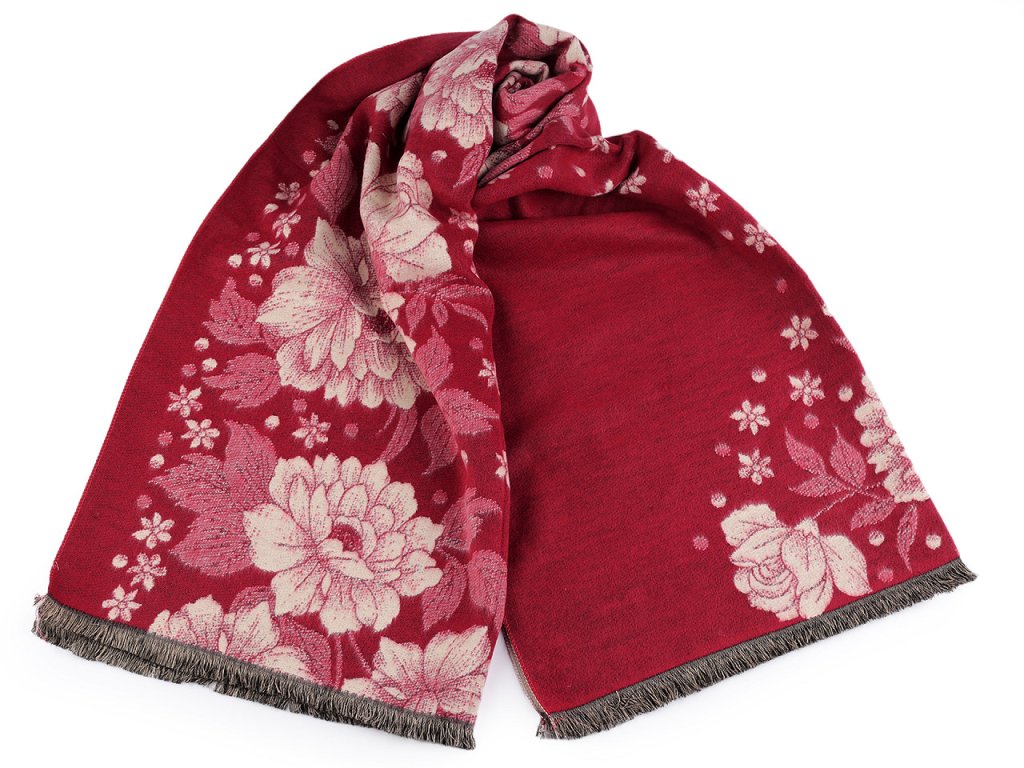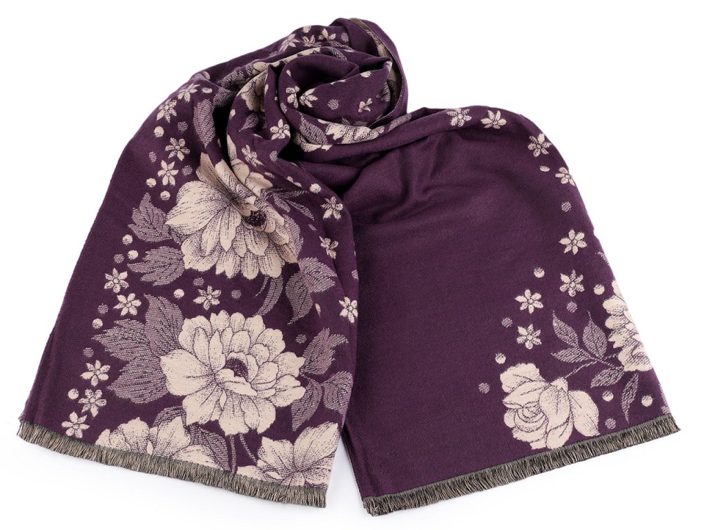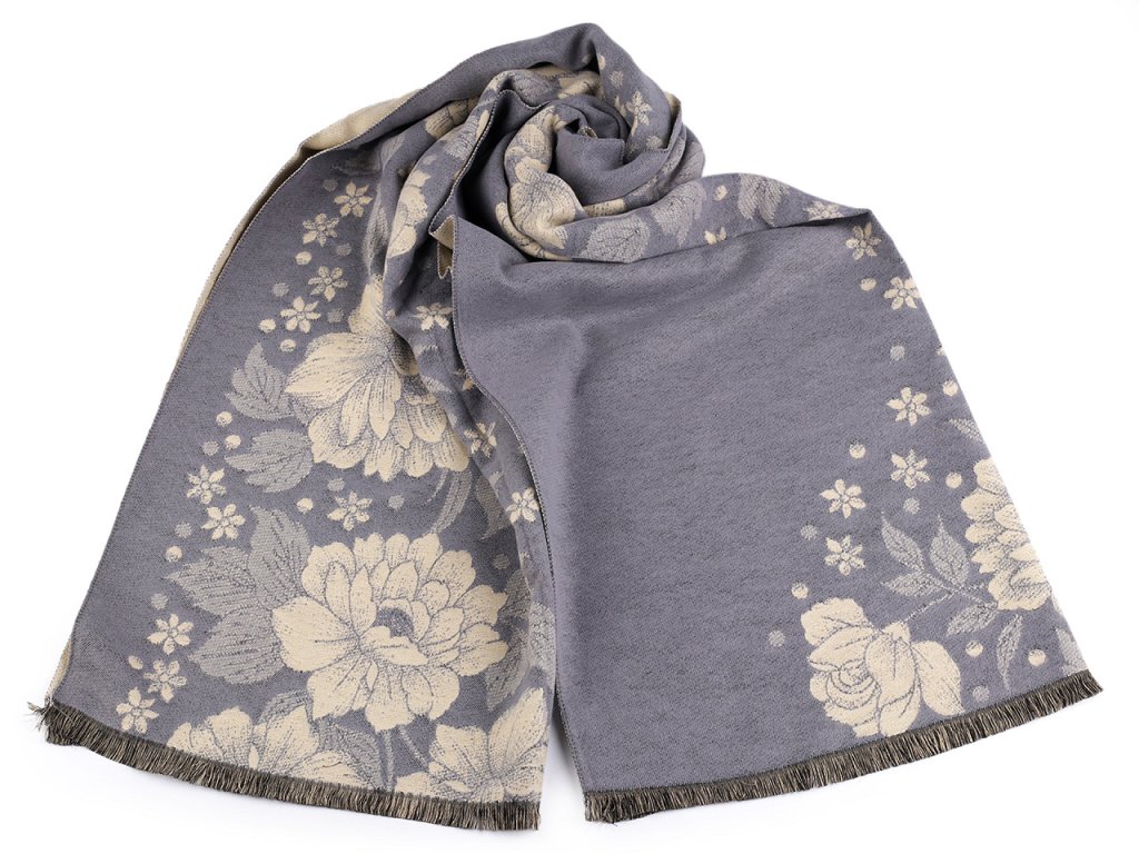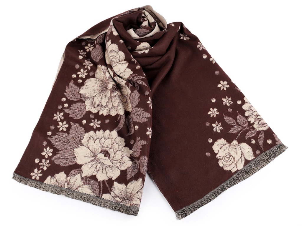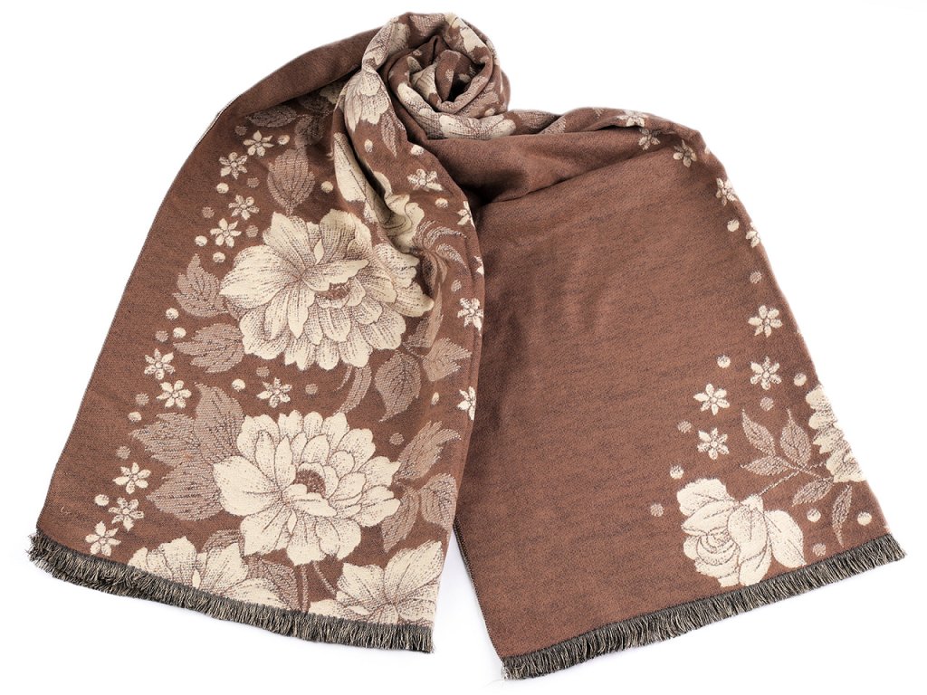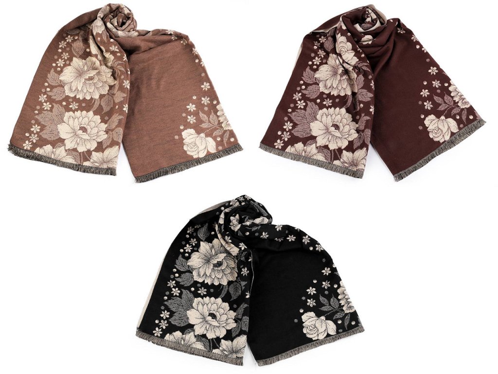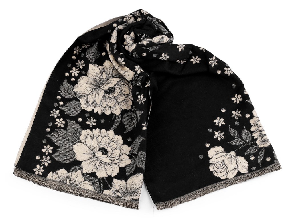 Šátek / šála typu kašmír s třásněmí, květy 68x180 cm