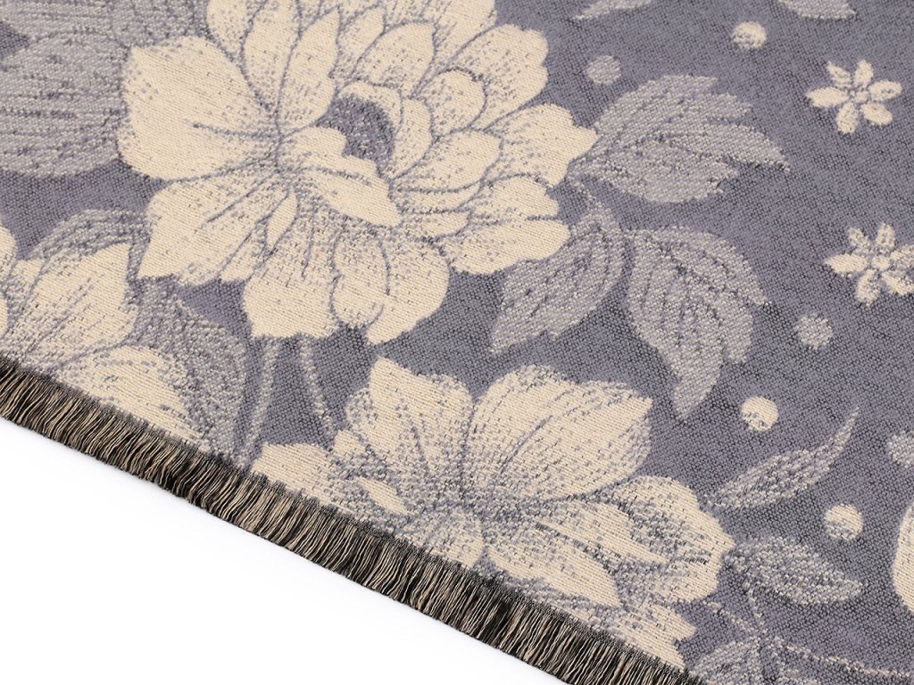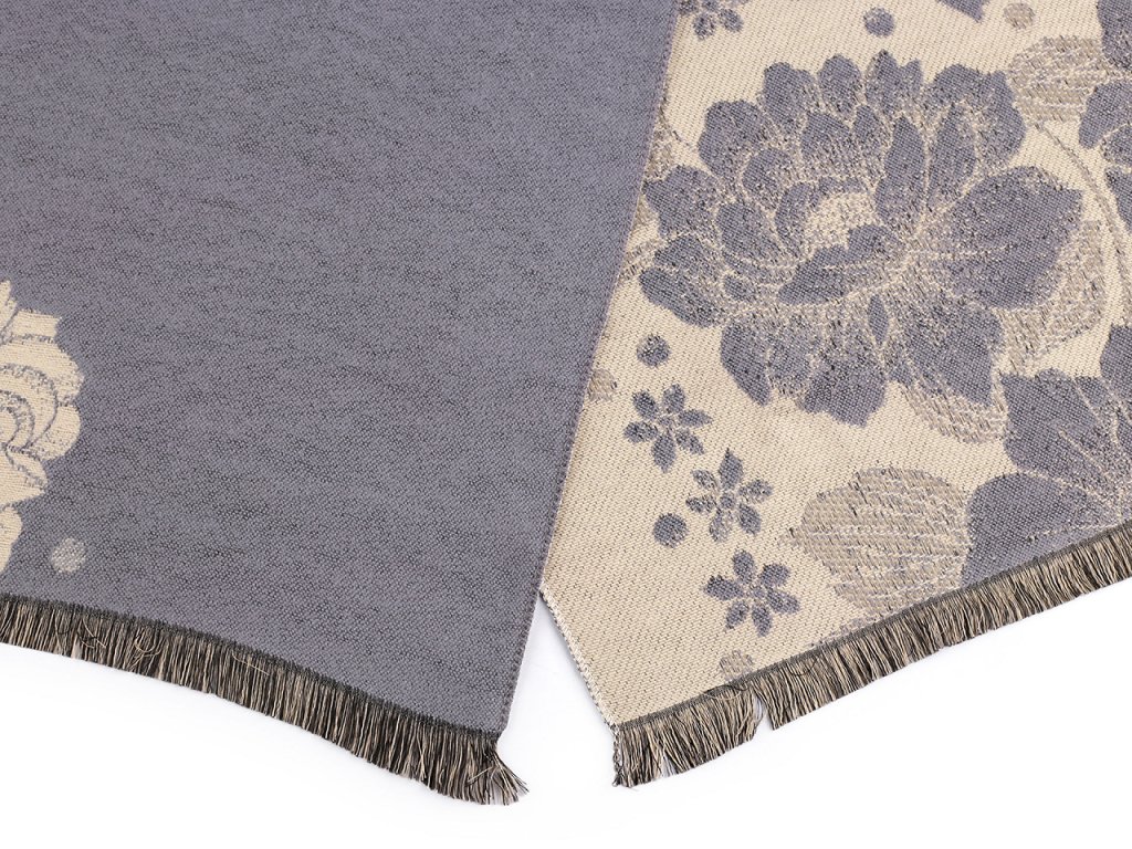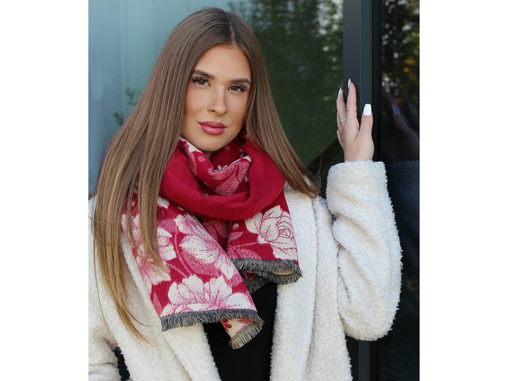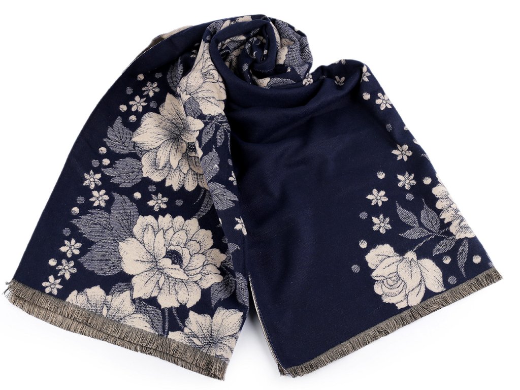 Velký luxusní šátek typu kašmír je ozdobený motivem s květy. Je vyrobený z hřejivého materiálu, který je příjemně hebký na dotek. Krásně vás zahřeje v chladném a sychravém počasí. Hodí se ke kabátu, bundě i svetru. Na koncích je zakončený třásněmi. Šátky typu kašmír jsou téměř dva metry dlouhé, skýtají široké možnosti při nošení. Můžete je nosit do práce i do společnosti, jejich elegantní vzhled váš outfit dokonale dozdobí. Některé šátky mají špatné štítky, skutečné složení je viskóza a polyester. Omlouváme se za toto nedopatření a děkujeme za pochopení. Šátek je oboustranný, ale z druhé strany má barvy přesně naopak, je světlý.- Šířka: 68 cm