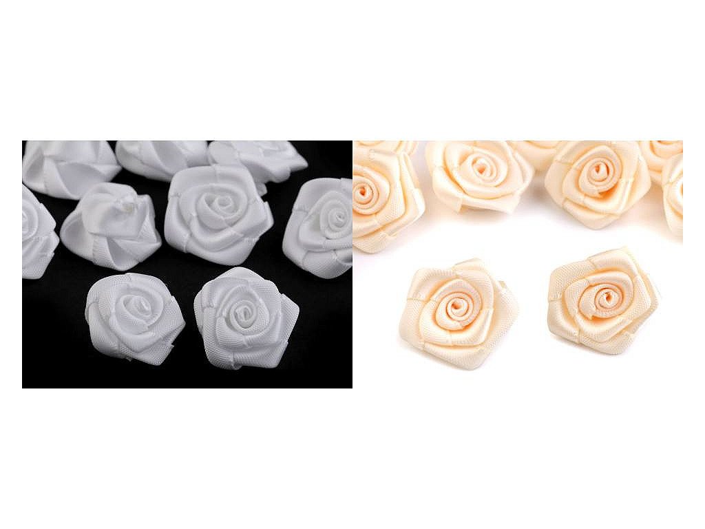 Textilní růžičky jsou precizně skládané, zpracované v té nejlepší kvalitě. Saténová stuha, která je tvoří, se jemně leskne. Použití: Růžičky využijete jako dekoraci na oděvy i ve scrapbookingu při zdobení přáníček, pozvánek, foto rámečků apod. Růžičky jsou vhodné také na svatební dekorace. Můžete je přilepit na čelenky do vlasů.- Průměr: 20 mm
