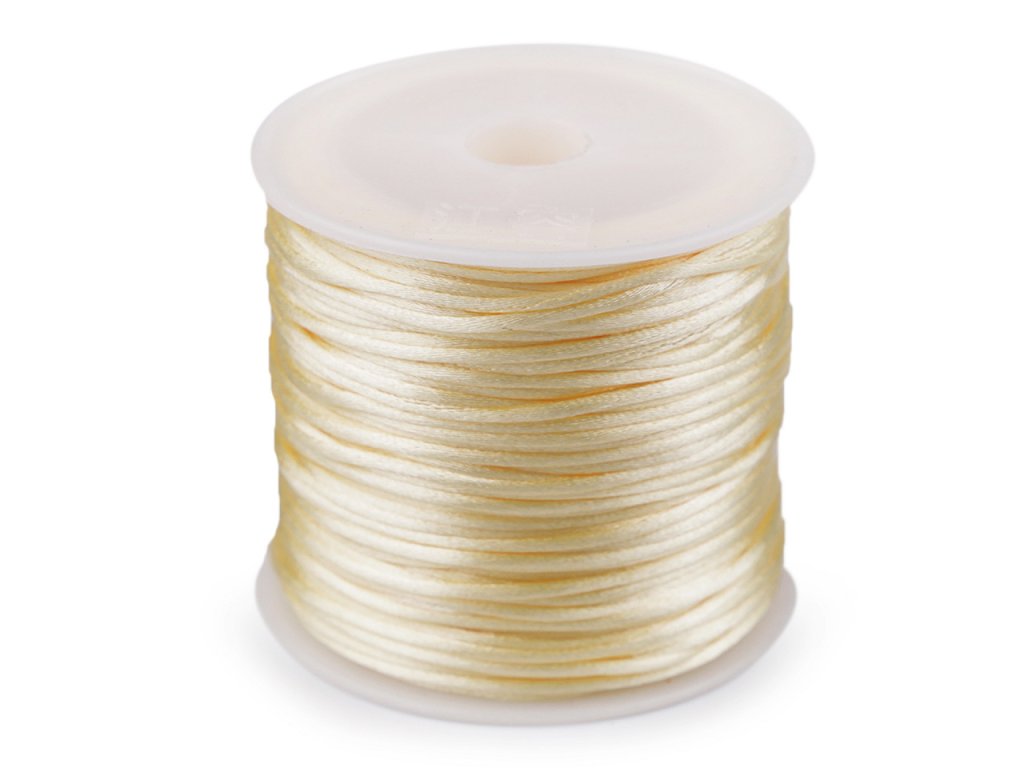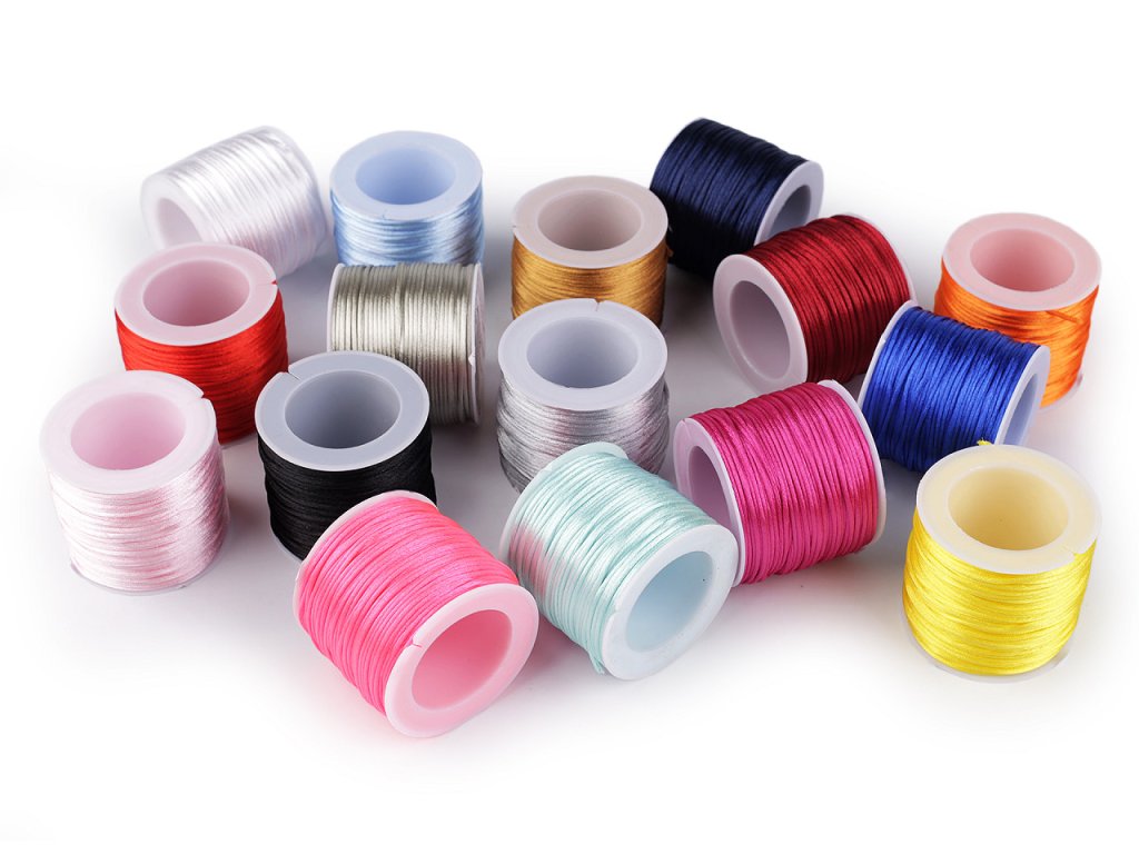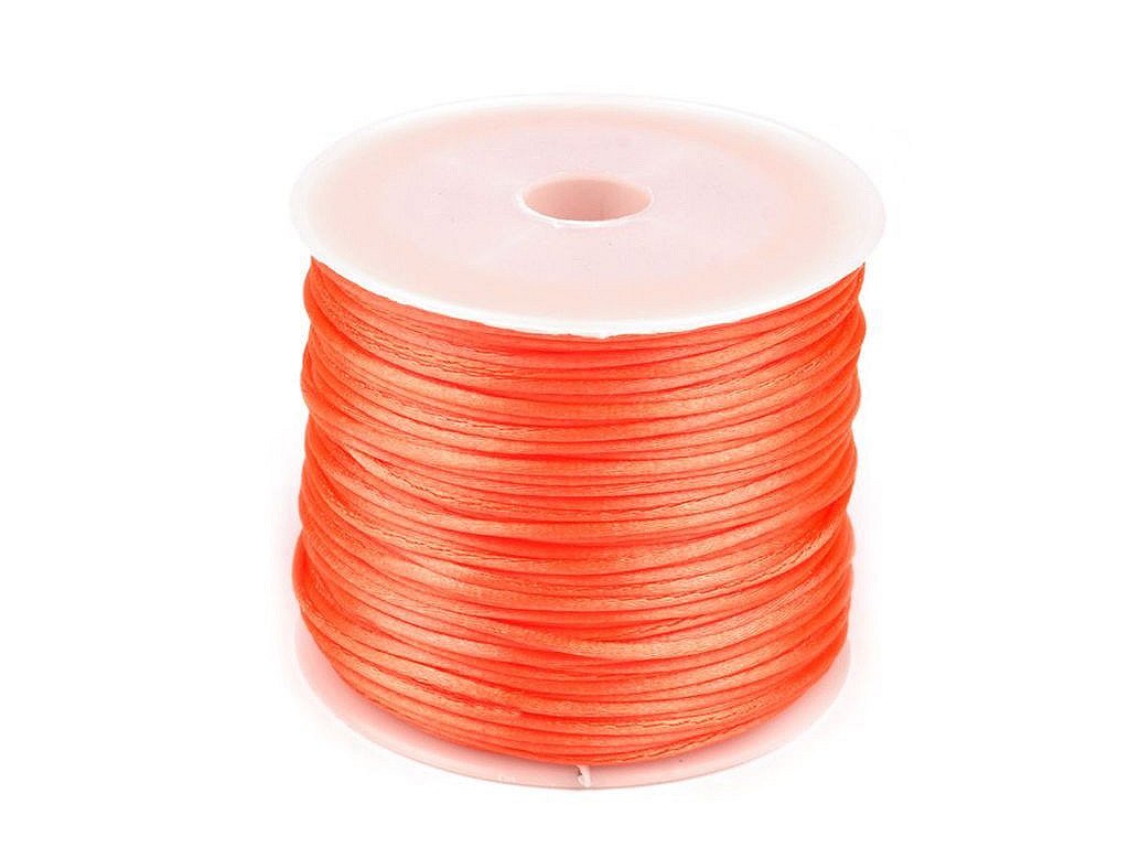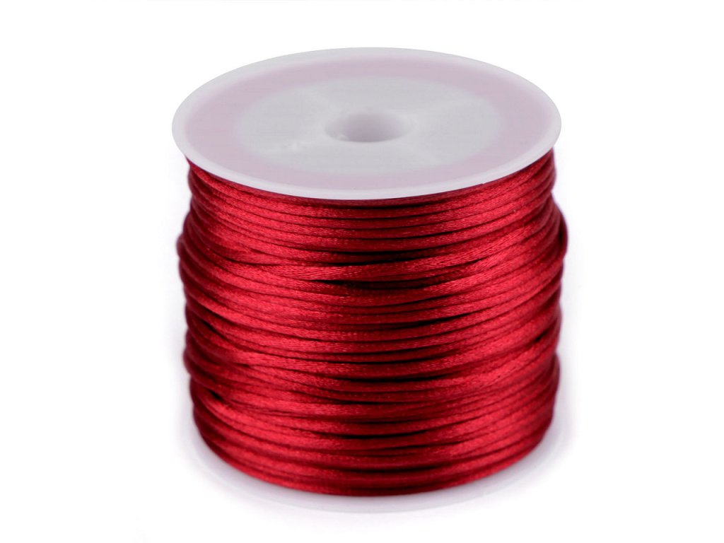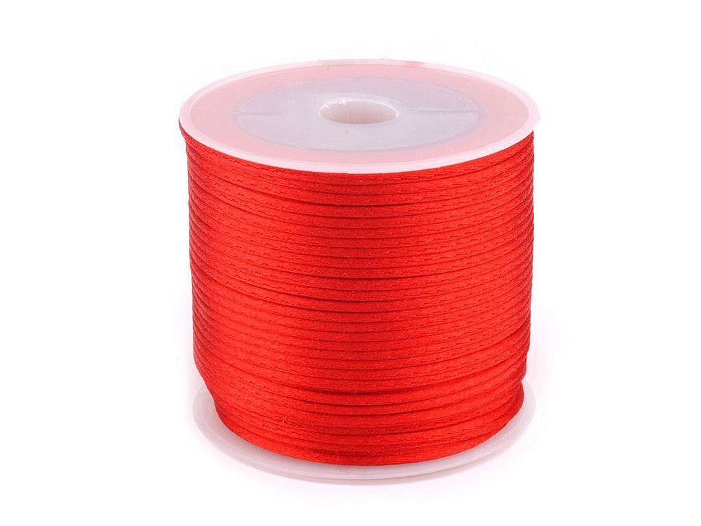 Saténová šňůra je velmi kvalitní a pevná. Použití: Šňůru můžete použít jako návlekový materiál na větší korálky. Pokud rádi tvoříte originální výrobky, tak ji určitě využijete na výrobu náramků, náhrdelníků nebo opasků pomocí techniky kumihimo a scoubi.- Průměr: 1 mm