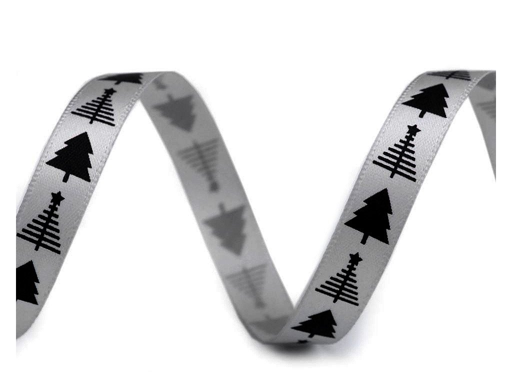 Saténová stuha stromeček šíře 10 mm vánoční
