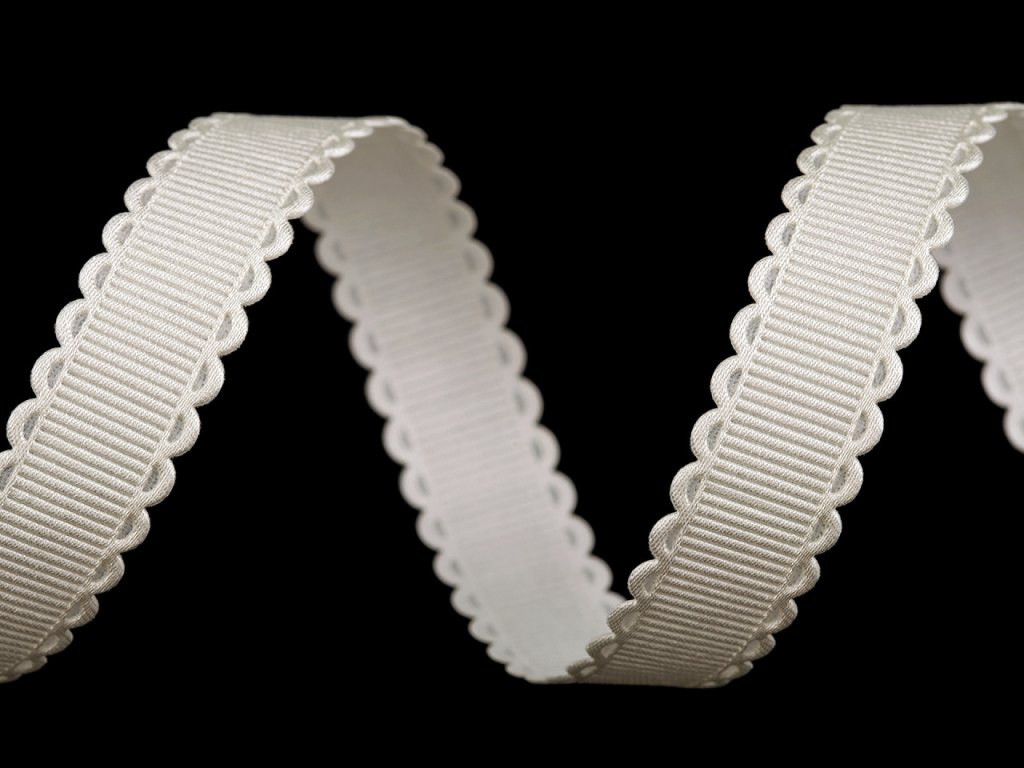 Vroubkovaná stuha zaujme svými obloučky po obou krajích. Vzhledem k technologii výroby je protlačený vzor precizní a rovnoměrný. Je jednostranná, zadní strana je hladká. Použití: Stuhu můžete našít na oděvy. Je vhodná k nejrůznějším dekoracím. Můžete ji použít do květinových vazeb, na výrobu ozdob do vlasů nebo broží.- Šíře: 16 mm